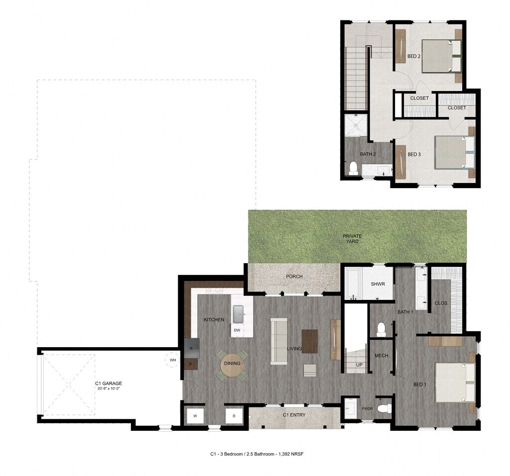 C1 - Floorplan 1 Apartment Unit: 120Apartment Model: C13 Bedroom, 2.5 Bath, 1392 sq ftAvailable NowApartment Unit: 315Apartment Model: C13 Bedroom, 2.5 Bath, 1392 sq ftAvailable NowApartment Unit: 316Apartment Model: C13 Bedroom, 2.5 Bath, 1392 sq ftAvailable Now