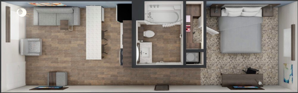 Price Availability Date Unit Sq Ft From $1,800 Available Now ADA King Suite 500-550 sq ft Model Amenities and Features