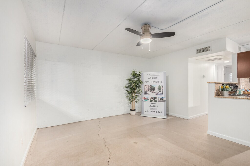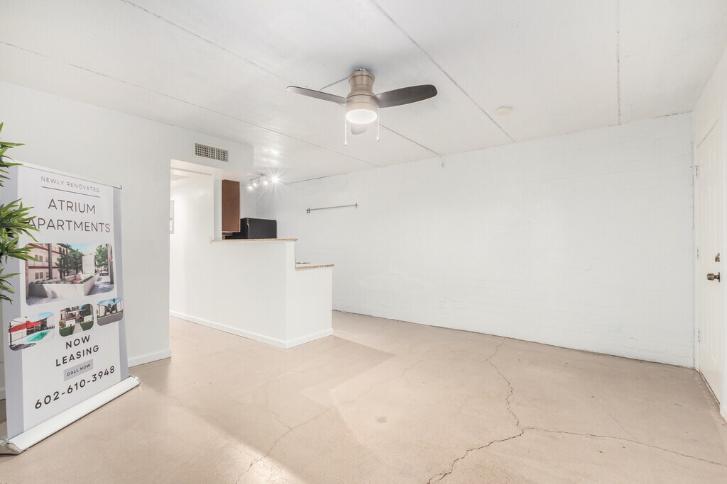Welcome to The Atrium, a stylish 3-story apartment complex that was recently updated to provide a modern living experience in the Alegre neighborhood of Tempe, Arizona. The Atrium features a unique living experience for its residents. The updated units on all three floors have sealed concrete floors and ceilings, giving off a trendy industrial feel. The remodeled interior courtyard is nestled among lush trees and features a built-in gas grill. Residents also enjoy access to a sparkling pool at the rear of the property, perfect for cooling off during the warm summer months. Unit Amenities Include: •Sealed cement flooring •Gourmet Mission-style cabinetry •Upgraded modern appliances •Stone backsplash (in select units) •Granite countertops Community Features Include: •Assigned parking •Onsite laundry •Sparkling pool •Updated courtyard with gas BBQ grill The Atrium is located in the heart of Tempe, within a 10-minute drive to the ASU campus and all the fun activities in the surrounding area. To view a 3-D tour please visit link: