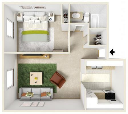 1 Bed, 1 Bath, 500-570 sq ftModel Gallery