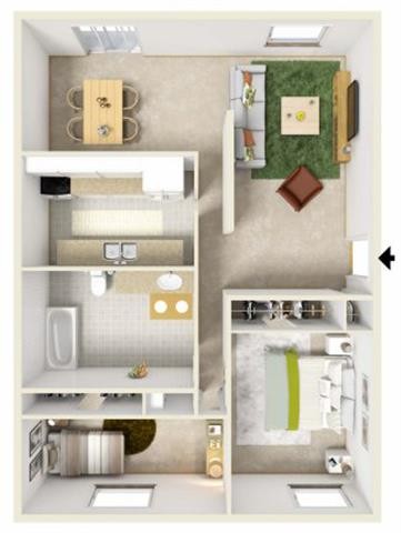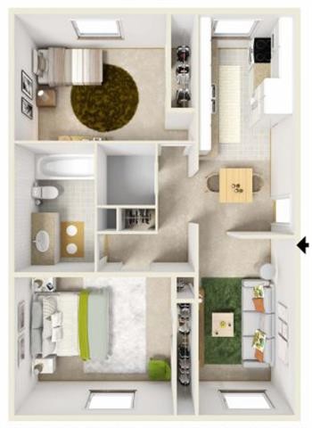 2 Beds, 1 Bath, 815-950 sq ftModel Gallery