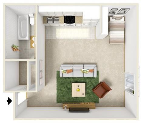 Studio, 1 Bath, 440 sq ftModel Gallery