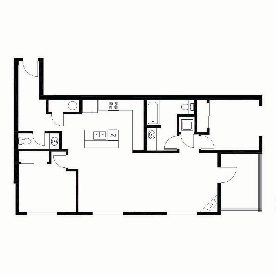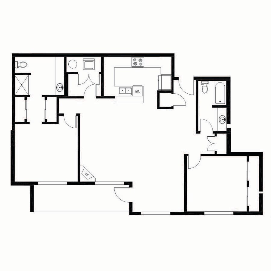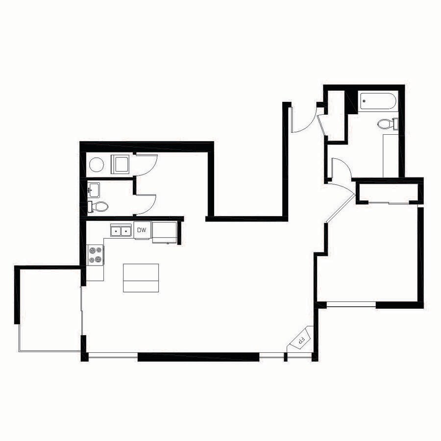 Apartment Model: SW Corner 2-bed 1-bathStudio, 1 Bath, 1030 sq ftUnavailable![]()