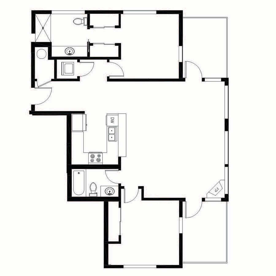 SE Corner 2-bed 1.5 bath - Floorplan 1 SE Corner 2-bed 2-bath