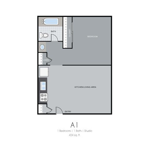 1 Bed, 1 Bath, 424 sq ftModel Gallery