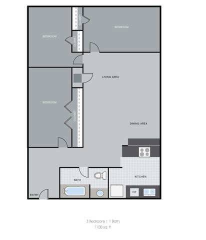 3 Beds, 1 Bath, 1100 sq ftModel Gallery