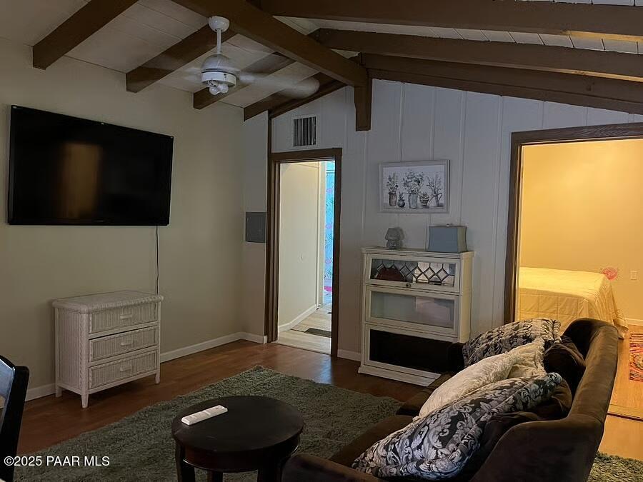 We're looking for a tenant interested in a 3- to 6-month lease to enjoy this peaceful 1-bedroom casita nestled in beautiful Prescott. Unwind in the inviting bedroom featuring a comfortable queen bed,and refresh in the full-size bathroom with a tub and shower. Enjoy modern comforts including Wi-Fi,air conditioning,heating,and a cozy fireplace.Step outside to your private patio with a gas BBQ and patio table--perfect for dining or relaxing. Shared amenities include on-site laundry and a backyard Jacuzzi with stunning golf course views,shared with two other units.No PETS