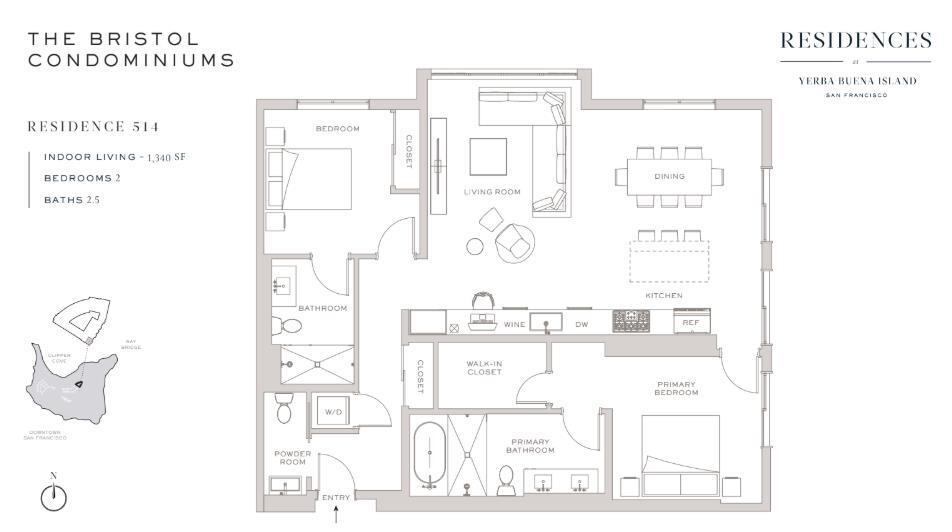 Milan JezdimirovicThis stunning corner residence at The Bristol offers unobstructed views of the Bay Bridge, the Bay, and the water. The thoughtfully designed split two-bedroom layout ensures privacy, while a powder room provides added convenience for guests. The spacious living room is bathed in natural light through luxury floor-to-ceiling windows. This home is appointed with high-end finishes throughout, including European hardwood flooring, a chef's kitchen with sleek Italian cabinetry, top-of-the-line Miele appliances, and a wine fridge. Both bathrooms feature Carrara marble vanities and Dornbracht fixtures. The main suite comes complete with an XL walk-in closet and spa-like en-suite bath. The Bristol at Yerba Buena Island is truly a once-in-a-lifetime new community with an exceptional offering of 266 luxury residences and unparalleled amenities, including a roof deck with seating and views of the Bay and GG Bridge & double BBQ's, the children's playroom, an attended lobby, morning coffee service, and package delivery at your door, and 24/7 front desk and security guard. Residents also enjoy the Weight & Cardio Room designed by Jay Wright, which includes scheduled classes like Inferno Pilates, Kickboxing and more. Your rent includes an unlimited Ferry pass! *photos of a similar unit*