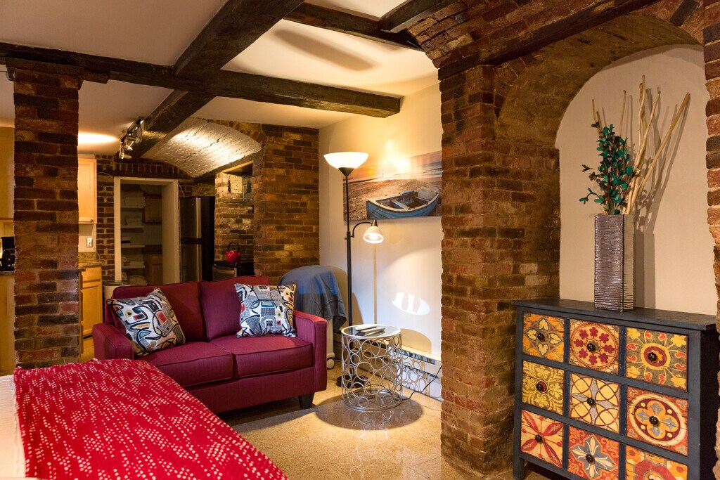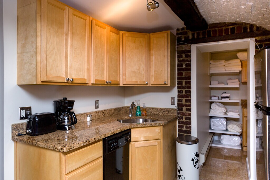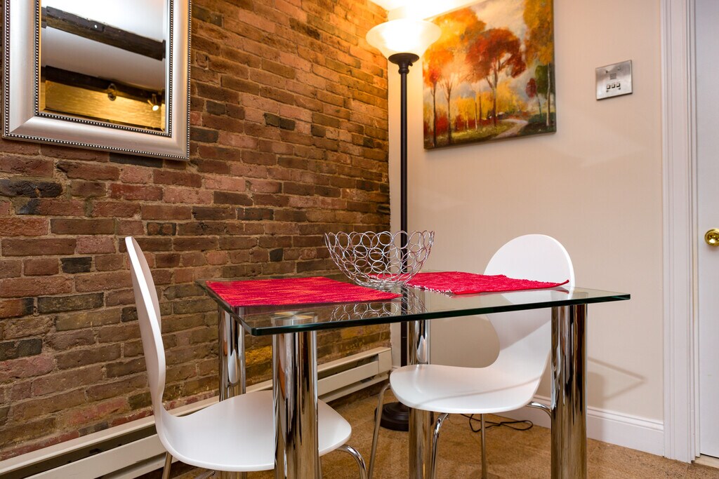AVAILABLE FROM SEPT. 1 STUDIO CONDO, 1 BATH with shower. All utilities, Cable TV, WIFI, linens, kitchen equipment included. (NO BROKER FEE) 4 MONTHS OR LONGER STUDIO (1 ROOM WITH SEPARATE KITCHEN), 1 BATH APARTMENT Snuggle into this furnished apartment condo with lots of charm and character. Nestled on a tiny street in the famous North End of Boston, and seconds away from the Old North Church along the Freedom Trail, you will enjoy contemporary furnishings mixed with 17th century quaintness. Features include: an exposed brick wall, two fireplaces (non-working), hardwood floors, and a modern kitchen with granite counter top, wood cabinets, dishwasher, and stove/oven, refrigerator, microwave, coffee maker and tea kettle. There is a walk-in-closet and a bathroom with a full tile shower. Linens are soft and soothing and the sleep sofa is extraordinarily comfortable with a Tempur-Pedic mattress. All utilities, Cable TV, WIFI, linens, kitchen equipment included. $105 monthly. $155 departure cleaning fee. Dog fee $100