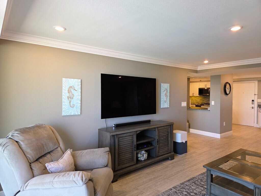 Stunning Completely Renovated Turnkey Furnished Condo Available for Immediate Annual Lease. Two bedroom/two bath corner unit in the private, gated, resort-style community of Key Capri in stunning Treasure Island! Will also consider six month lease. Overlooking the sparkling waters of Boca Ciega Bay, this sixth floor unit offers dazzling water views. Welcome to the spacious open floorplan and large Great Room with luxury vinyl flooring opening to both the Dining Room and the Kitchen. Sliding doors lead out to the private patio/balcony with water views. The Kitchen features white shaker style cabinets, all new appliances and stone countertops. The primary bedroom has a walk-in closet and its own ensuite Bathroom with double vanity, shower. There is an additional Guest bedroom and a second full Bathroom. A convenient washer and dryer are located in the unit for your use. Enjoy all of the community amenities including a Clubhouse with recreation room, billiard room, library, fitness area and more. There is a heated pool and inground jacuzzi/spa adjacent to the large tiki hut and sundeck. Other amenities include tennis courts, shuffleboard courts and a putting green and fishing dock. The unit has a garage space under the building. Rent includes water, sewer, trash, basic cable tv and internet. Application fee $65 per adult and $100 tenant processing fee. HOA application and approval. Sorry no pets. HOA approval fee $150 and $500 check collected by HOA as refundable damage deposit before move-in. Tenant pays $45 month for renters insurance and benefits package. Listed by Drew Carlyle with Keller Williams Gulf Beaches