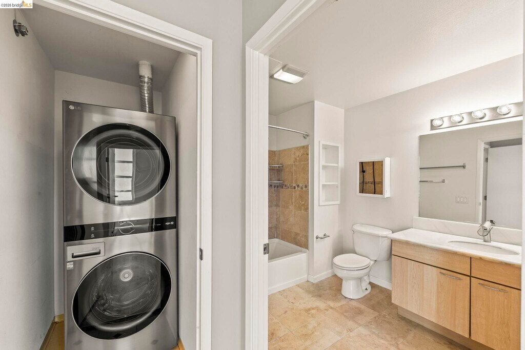 AVAILABLE NOW! Loft style 1 bed 1 bath 1 parking condo Essex with a bonus room by Lake Merritt with in-unit laundry in Oakland Showing by appointment only. Due to the volume of inquiries, no phone calls please. Please send email by click on "Request a tour" or "Check Availability" or "Email" with your credit score and email address, we will contact you to schedule an appointment. Check out our 3D WALKIN TOUR: Unit features: - Bright and spacious open-concept loft layout with soaring double-height ceilings and a striking spiral staircase. - Premium stainless steel kitchen appliances, including a stove/oven, French-door refrigerator, dishwasher, and built-in microwave - Spacious bathroom with a large dark wood vanity and a fully tiled shower/tub combo - Spacious upper-level loft, a flexible area perfect for home office with access to generous private patio offering enough space for outdoor seating - Large sliding glass doors lead from the main living area directly to a private balcony - In-unit Washer/Dryer - 1 designated garage parking space - Heat : Electric - A/C available Amenities: - 24/7 Staffed lobby entrance - Secured garage parking - Fitness Center - Conference room and Business center - Swimming Pool/ Spa - Club house w/ bbq - Optional extra locker storage $75/month Location: - Conveniently situated within an approximately 10–14 minute walk of three BART stations: Lake Merritt, 19th St Oakland, and 12th St Oakland City Center - SF's Financial District is accessible in roughly 13 minutes by freeway - Bike score of 89–94 with numerous nearby paths and dedicated lanes - Walking distance of Lakeside Park, the Oakland Museum of California, and the Rotary Nature Center - Walkable to Uptown and Downtown Oakland's diverse restaurants, cafes, and bars - Three shopping centers, including Pacific Renaissance and Old Oakland, are located within approximately 1.2 miles Lease terms: - $3,200 monthly rent - $3,200 security deposit - Verified monthly gross household income 3x rent - Proof of funds equivalent to 2.5X the monthly rent - Credit score 680 or above - No pets allowed - No Smoking - Tenant pays electricity, internet, a one time $300 move-in fee and a $1,000 refundable moving deposit required by HOA - Owner pays gas, water and trash - Minimum 12-month lease - Deposit and 1st month rent due at lease signing - Tenant required to have a $18 monthly mandatory tenant liability insurance - Tenant agrees to abide by all Homeowner's Association Rules and Regulations - Preference will be given to early move-in qualified tenants Offered and managed by The Cal Agents Realty, DRE# 02020017