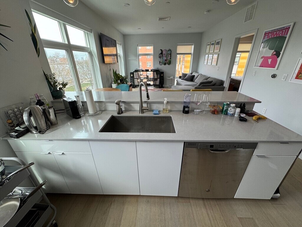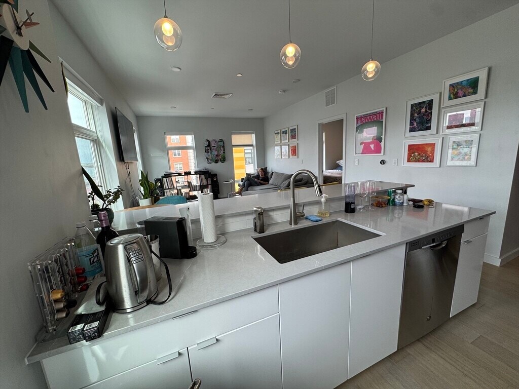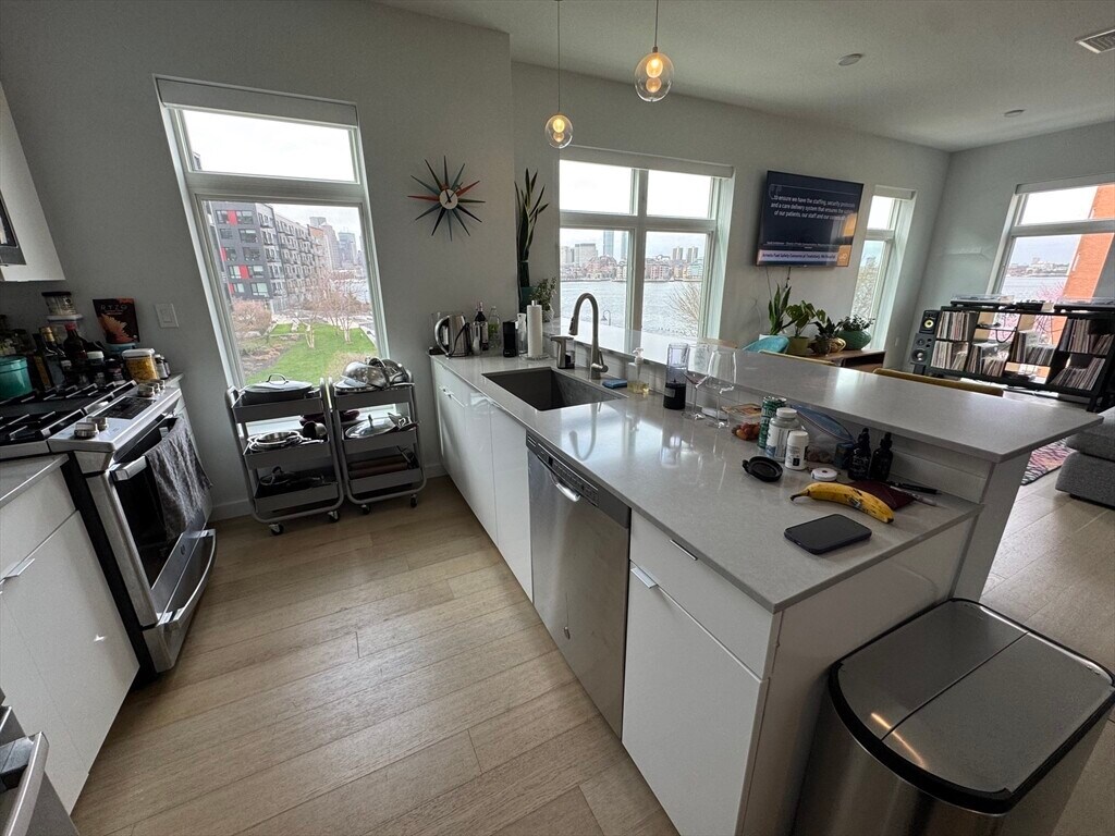 AVAILABLE 5/20/26. Spectacular waterfront three-bedroom + two-bathroom corner penthouse with sweeping Boston harbor view! Flooded with light through oversized windows from 3 exposures, the open concept living room + kitchen features stainless appliances and beautiful pendant lighting over Silestone countertops. The soft palette is anchored by Cobble Oak Kember floors throughout. The primary bedroom features a beautifully appointed en-suite bath. The two additional bedrooms and sleek second full bath completes this trophy home. Embrace life in East Boston enjoying waterfront dining, dynamic art installations, an abundance of recreational activities as well as convenient access to the water taxi or MBTA that delivers you to downtown or to the Seaport within 10 minutes. Harborwalk Residences, Waterfront Living Within Reach! Pets welcome. Contact me for a showing!