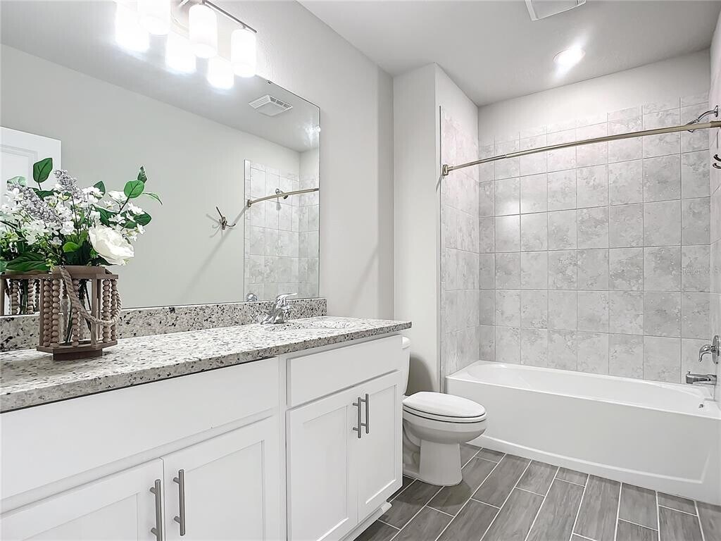 It's a new year and maybe a new rental is in your plans. If so, this beautiful, brand new 3 bedroom, PLUS flex room, 2 bath home is a must see. The additional flex space makes a great home office, den, guest room, etc. Home was a builder's model so there are many upgrades not included in most rental houses. Some of the upgrades include, granite counters and soft close cabinetry, SS appliances, ceiling fans in all rooms and blinds on all windows and doors. The home has plank style ceramic tile throughout, no carpet anywhere. The lanai is screened in and the home has a fully fenced rear yard making for outside enjoyment. The home is Florida green certified so utility bills are greatly reduced. Home sits on a small cull de sac making for more spacious exterior privacy. This is a home not to be missed!!