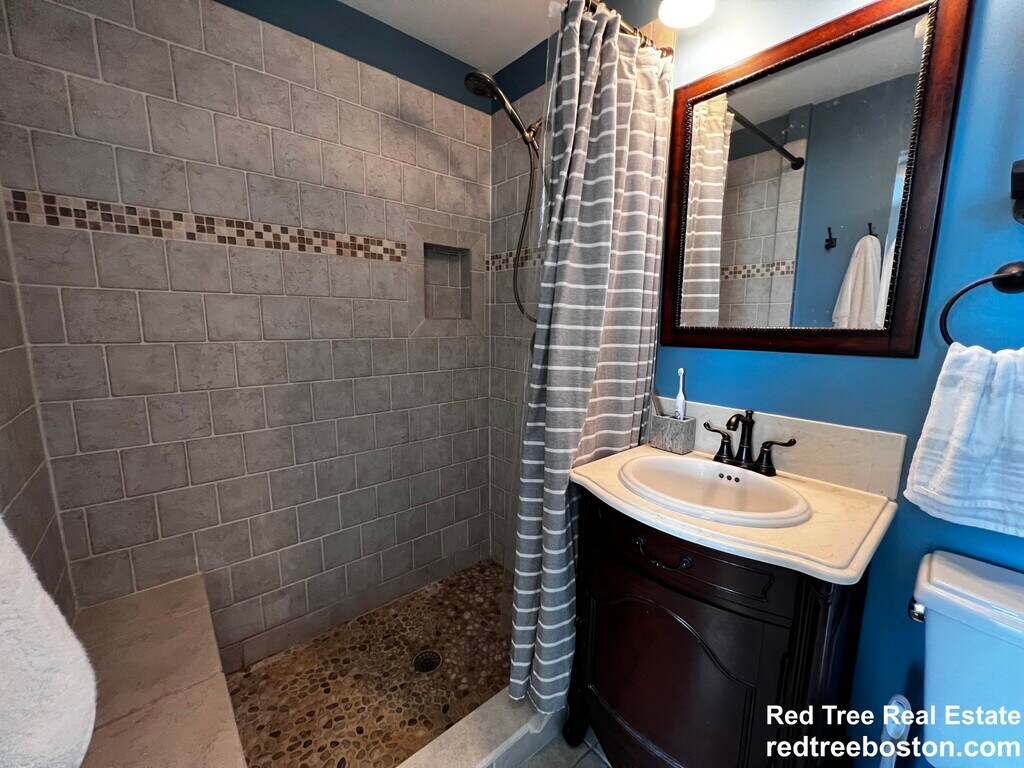 Impresionante condominio de dos camas y dos baños, ubicado en el vecindario más buscado de Roslindale, Peter's Hill. A pasos del Arboreto Arnold, la línea ferroviaria Needham Commuter y todas las fabulosas tiendas y restaurantes de Roslindale's. Este condominio se encuentra dentro de una hermosa casa victoriana rodeada de exuberantes paisajes y un soleado oasis en el patio trasero. Hermoso baño principal en la suite con detalles de azulejos y piedras. El espacio flexible en el rincón se puede utilizar como rincón de comedor o como oficina en casa. aire acondicionado central, pisos de madera, cocina renovada, lavadora/secadora en la unidad y espacio exclusivo para uso en el patio. Se incluye un lugar de estacionamiento Disponible el 1 de septiembre.