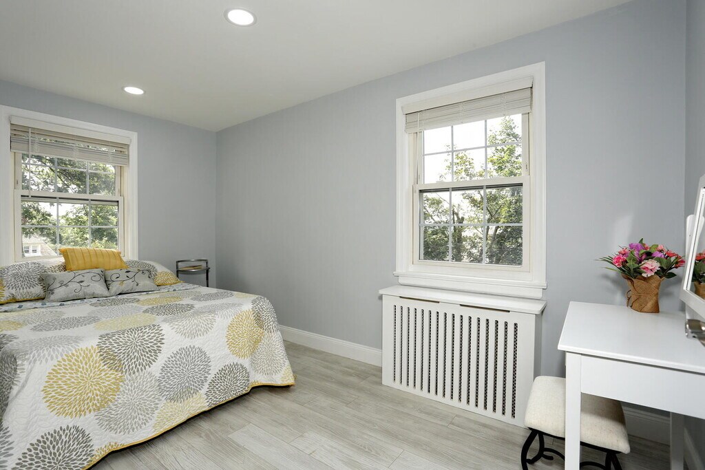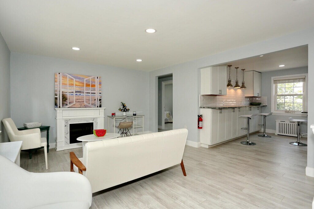Gorgeous fully renovated condo with 2 parking spaces - a garage with an automatic door opener & outdoor condo parking in the best East Hill area of Englewood, located on the picturesque grounds with manicured lawns on a quiet side street in the heart of Downtown Shopping & Restaurant District! 10 min drive to NYC! NYC express bus & local buses out front. Stunning sun drenched modern fully renovated 2 bedroom unit with 5.5 feet height attic above the entire unit for storage; new electric panel, new state of art eat-in open concept windowed kitchen with oversized breakfast bar, island, granite countertops, & stainless steel appliances. New gorgeous windowed bathroom, new floors, large windows, 6 huge closets, modern electric fireplace, recessed lighting. Ample free street parking. New laundry facility on premises. Walk to the library, Bergen Performing Arts Center, yoga & hot yoga, Shoprite, Englewood Hospital, parks, Houses of Worship, & all restaurants imaginable! Garden style building with benches outside. Cats friendly. Only therapy dogs for the tenants, dogs allowed only for the owners residents. Amazing very responsive management company keeps the entire building & its grounds in perfect condition. Superintendent on premises. Great community! Relative has NJRE.
