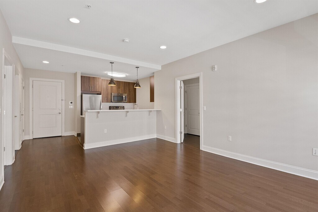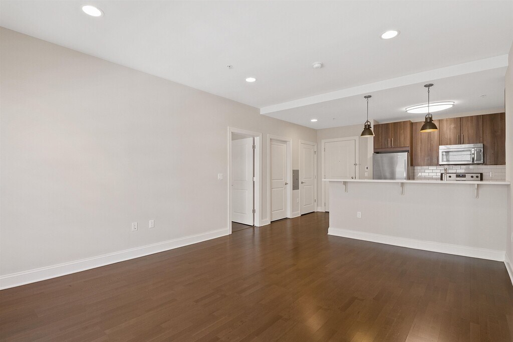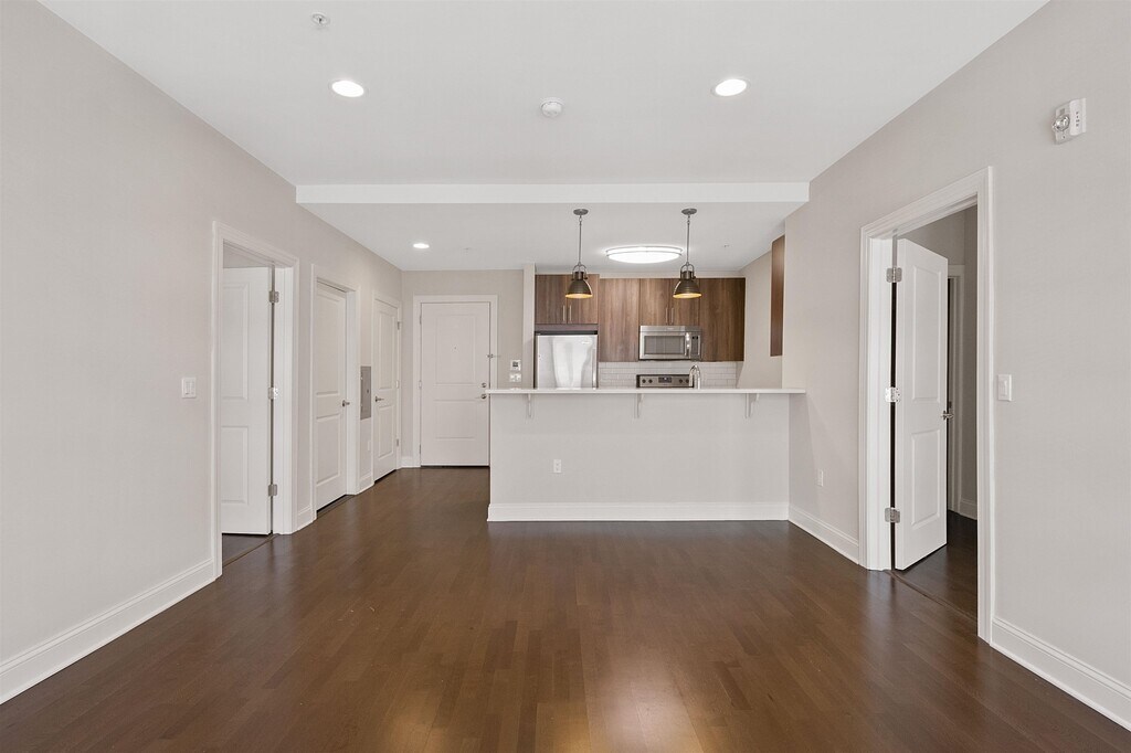 **One month free on a 12 month lease** Beautiful 2 bed with 1 large den (large enough for 3rd bedroom) in an elevator luxury building on 1st and Marshall Street. Walk into hardwood floors spread throughout the apartment's oversized living room and dining room area. The open-floor lay out kitchen with stainless-steel appliances and stone countertops makes for hosting company a breeze! Lastly enjoy the well-light bedroom space with a large walk in closet for storage! Building is pet friendly and has washer/dryer located across the hall making laundry day an easy day! Right across the street from the light rail, and a short walk to the bus stop and Path station. Next to restaurants, bars, shopping, park and much more. Large dogs ok (pet fee applies). Available ASAP!