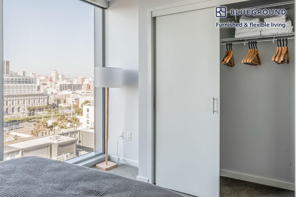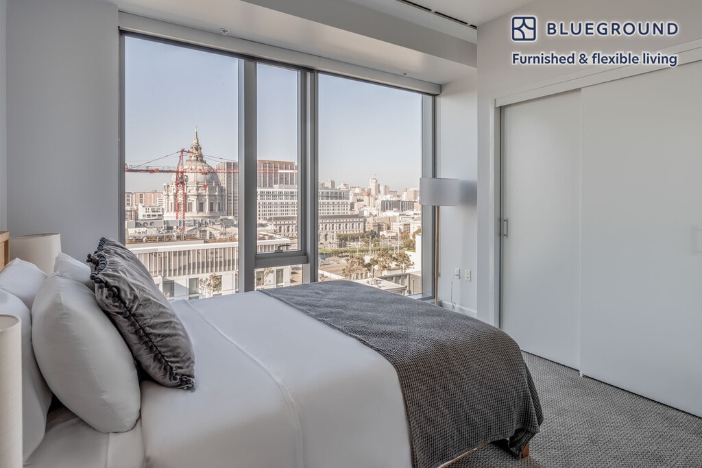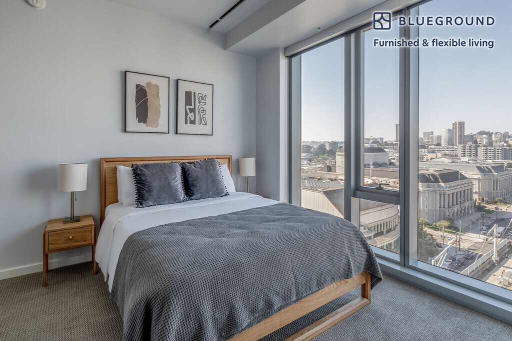 Show up and start living from day one in San Francisco with this sophisticated two bedroom Blueground apartment. You’ll love coming home to this thoughtfully furnished, beautifully designed, and fully equipped Civic Center home. (ID #SFO1478) The advertised rate of $5,860/month is the lowest available price, based on a 3 month(s) stay with a move-in date of December 10, 2025. If you’re looking for a 1-year stay, the rate is $6,790/month. Rates vary depending on the duration of stay, season, and other parameters. For exact pricing and additional pricing components, please visit our website and enter your desired move-in and move-out dates. The rate is applicable when billed upfront; it can be higher if billed in multiple payments. Brokers are welcome to reach out. Were you looking for an unfurnished lease? Try Blueground instead and upgrade from unfurnished to furnished living: - Furnished at rates comparable to unfurnished - No setup or furniture costs - save thousands - Move-in ready - save time, just bring your suitcase Designed with you in mind As with any Blueground apartment, you’ll find a thoughtfully designed space complete with beautiful furniture and a fully equipped kitchen in this two bedroom property. And, thanks to our superior quality mattresses, luxury linens, and towels, you can relax knowing you’ll always feel comfortably at home. When you’re ready for some fun, you can take in the San Francisco vibes or bring the entertainment to you with the premium wireless speaker or smart TV. This apartment also offers in-apartment laundry. Sleeping arrangements King Bed, 70.8in/180cm Queen Bed, 63in/160cm Amenities Building amenities unique to this two bedroom apartment include an on-site: - Basketball Court - Doorman - Dryer - Elevator - Swimming pool - Washing machine - Lounge - Library - Parking - Pets allowed - Rooftop BBQ Arrival and ongoing support The entire apartment is yours to enjoy! Throughout your stay, you’ll have access to our Client Experience team through the Blueground App. You can schedule additional cleanings, submit maintenance requests, and view our neighborhood recommendations with just a few taps. We’ll share all details upon confirmation of your stay. Ideally Located This furnished apartment is in the Civic Center. The area contains many of the city’s largest government and cultural institutions. It is home to San Francisco’s City Hall and is surrounded by a number of classical buildings. The Supreme Court of California, the Asian Art Museum and the library are all located here. It has two large plazas (Civic Center Plaza and United Nations Plaza) and is the main site for any culturally significant activity. Located in the heart of the city, the SFO Airport is just 25 minutes by car or 45 minutes by BART. Other things to note Building amenities may have an extra cost. This Blueground apartment has flexible lease options, allowing you to book it for one month, a year, or more. Pets are welcome, though weight limits and breed restrictions apply and may incur fees. Parking is offered based on availability and is subject to a fee. We take great pride in ensuring every photo displayed is shot in our own units with our actual furnishings. That said, we regularly refresh our decor and furniture arrangement, which may differ from what’s pictured. [SI]