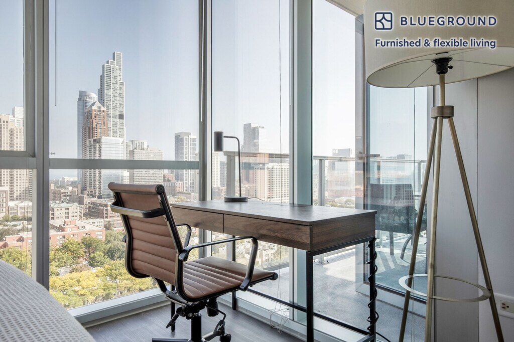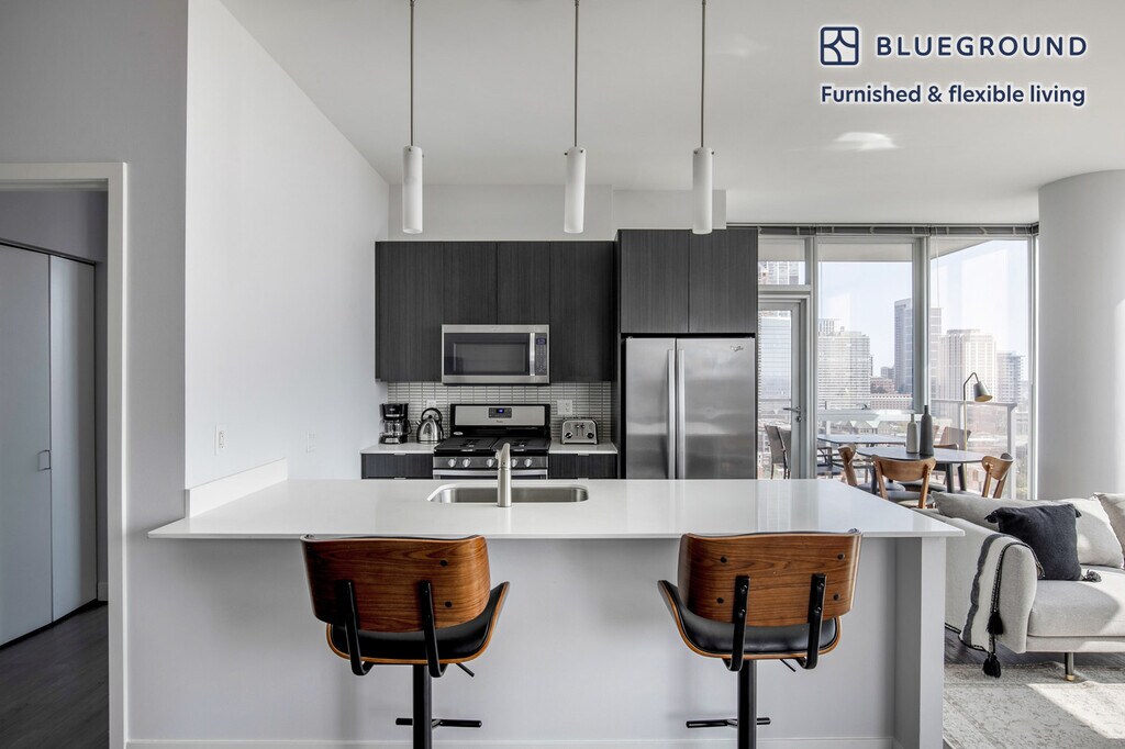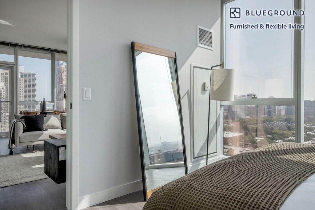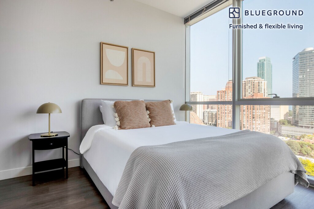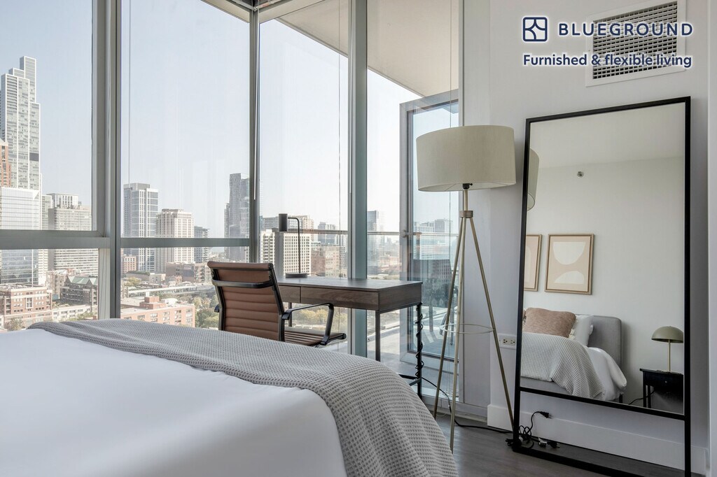Discover the best of Chicago, with this one bedroom apartment in South Loop. It’ll be easy to simply show up and start living in this furnished apartment with its fully equipped kitchen, living room, and our dedicated, on-the-ground support. (ID #CHI991) The advertised rate of $3,760/month is the lowest available price, based on a 4 month(s) and 24 day(s) stay with a move-in date of August 17, 2030. If you’re looking for a 1-year stay, the rate is $3,940/month. Rates vary depending on the duration of stay, season, and other parameters. For exact pricing and additional pricing components, please visit our website and enter your desired move-in and move-out dates. The rate is applicable when billed upfront; it can be higher if billed in multiple payments. Brokers are welcome to reach out. Were you looking for an unfurnished lease? Try Blueground instead and upgrade from unfurnished to furnished living: - Furnished at rates comparable to unfurnished - No setup or furniture costs - save thousands - Move-in ready - save time, just bring your suitcase Designed with you in mind Thoughtfully designed with bespoke finishes, modern furnishings, and a fully equipped kitchen, you’ll enjoy that “I’m home” feeling with this Blueground apartment. Whether you’re lounging in your cozy living room streaming the latest and greatest entertainment on the smart TV or premium wireless speaker, or getting some well-earned rest on the superior quality mattress with fully stocked linens, you’ll fall in love with everything this South Loop apartment has to offer. This apartment also offers in-apartment laundry. Sleeping arrangements King Bed, 70.8in/180cm Amenities Building amenities unique to this one bedroom apartment include an on-site: - Basketball Court - Dryer - Elevator - Game room - Swimming pool - Washing machine - Parking - Pets allowed Arrival and ongoing support The entire apartment is yours to enjoy! Throughout your stay, you’ll have access to our Client Experience team through the Blueground App. You can schedule additional cleanings, submit maintenance requests, and view our neighborhood recommendations with just a few taps. We’ll share all details upon confirmation of your stay. Ideally Located This furnished apartment is located in South Loop. A dynamic neighborhood with a unique mix of attractions, shopping and history. Take a stroll along South Michigan Avenue and the nearby Prairie Avenue district to see "Millionaire's Row", an area lined with mansions belonging to Chicago's wealthiest elite. For shopping, visit the Roosevelt Collection, an open-air plaza, home to a cinema as well as premium local and national retailers. Along the southern edge, you will find Soldier Field, the Chicago Bears football stadium. Don’t miss the Shedd Aquarium, Field Museum and Grant Park, all adjacent to one another and huge attractions in South Loop. Other things to note Building amenities may have an extra cost. This Blueground apartment has flexible lease options, allowing you to book it for one month, a year, or more. Pets are welcome, though weight limits and breed restrictions apply and may incur fees. Parking is offered based on availability and is subject to a fee. We take great pride in ensuring every photo displayed is shot in our own units with our actual furnishings. That said, we regularly refresh our decor and furniture arrangement, which may differ from what’s pictured. Also note - This apartment is not located near public transportation [SI]