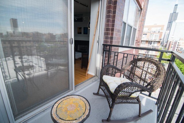 Sunny high floor South facing unit in one of the West Loop's best run, full amenity buildings! Over 1400 sq.ft. w/ generous room sizes! Open floor plan and 10.5' tall concrete ceilings - great for entertaining and allows for multiple uses for the space! Plenty of granite counters in the kitchen & the island/breakfast bar is ideal for drinks or casual meals. Or, have drinks before dinner on your over-sized balcony with drop dead gorgeous views of Chicago's Loop and the Sears (Willis) Tower! Split bedroom floor plan. The master suite is spacious, with a huge, professionally organized walk-in closet & a spacious master bath. Laundry is conveniently in-unit. Renovations in 2016 included new doors, appliances, and the extension of bedroom walls to the ceiling & fresh paint. Building amenities include a 24 hr door staff, biz center, upgraded fitness center, roof deck, bike room & dry cleaners. No smoking or pets please. listing courtesy of: Keller Williams Rlty Partners