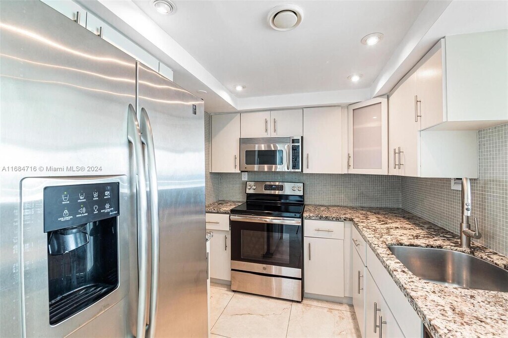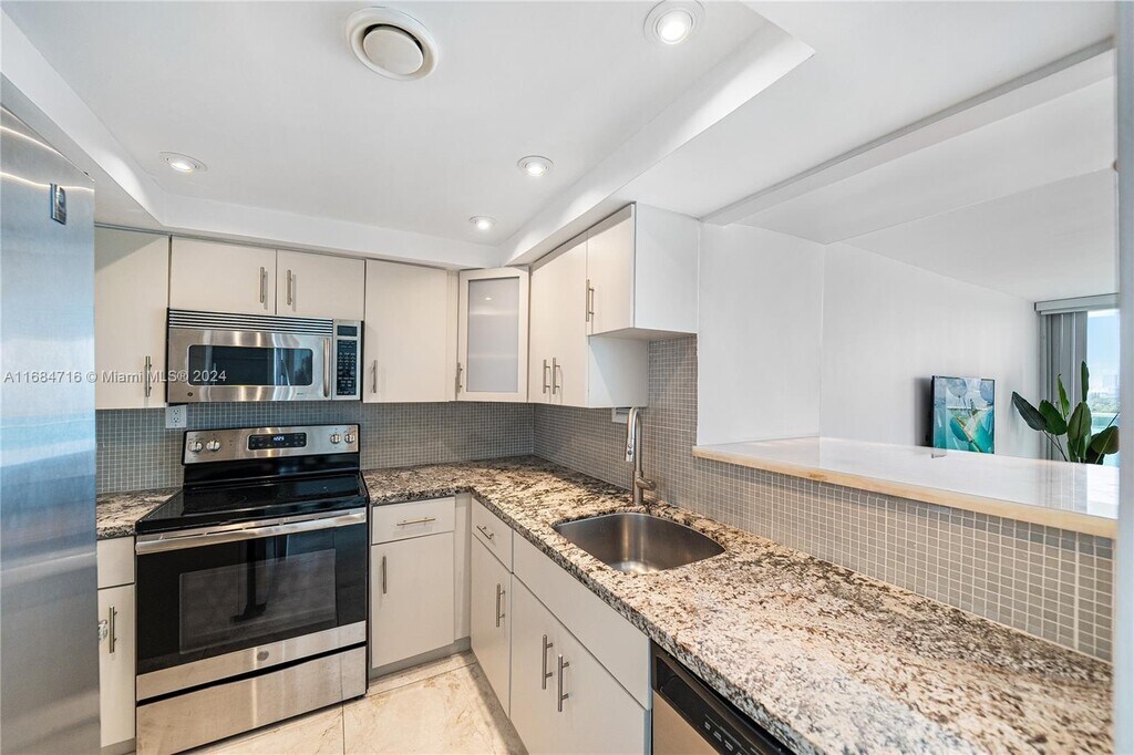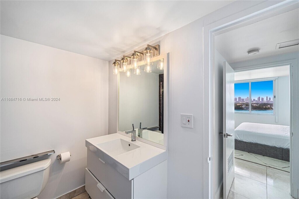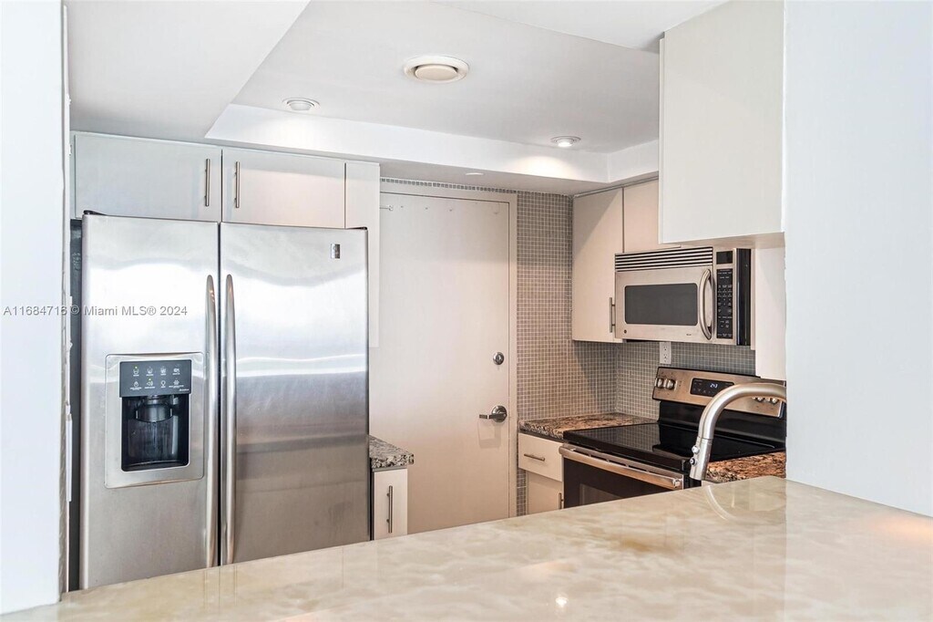 Experience Miami Beach living at its best in this beautifully renovated studio on sought-after West Avenue. Bright and spacious, it features a contemporary open layout with floor-to-ceiling impact windows framing stunning views of Biscayne Bay and the Miami skyline. The interior offers gray-toned flooring, recessed lighting, and a custom kitchen with quartz countertops, sleek white cabinetry, breakfast bar, and new stainless-steel appliances. The bathroom includes a glass-enclosed walk-in shower, modern vanity, and matte-black fixtures. Enjoy your morning coffee or evening cocktail on the private balcony overlooking the bay — a perfect blend of comfort and sophistication. Located in a full-service building near Lincoln Road, the beach, and top dining and entertainment