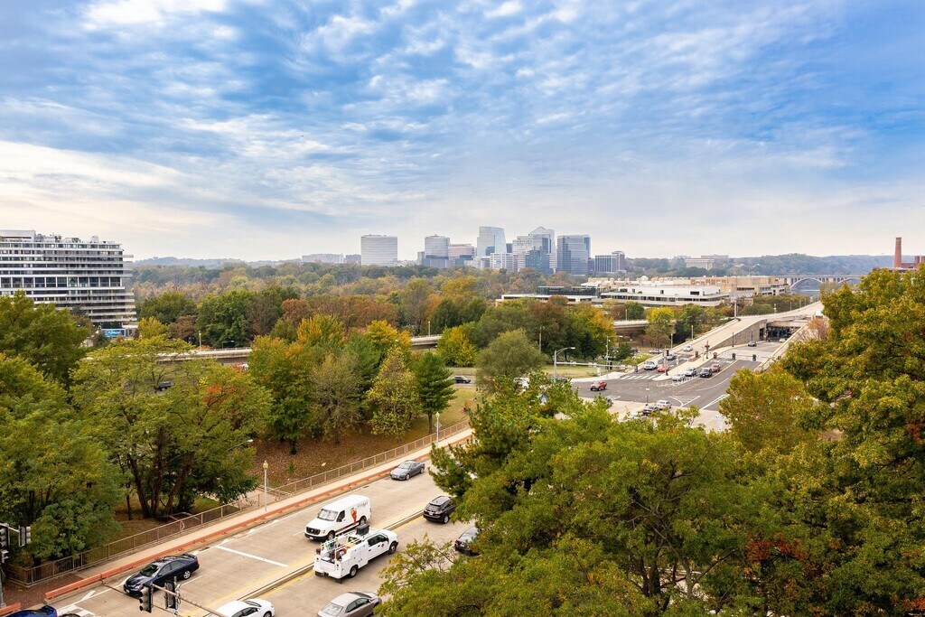Bright 1Bed/1Bath home with GARAGE PARKING and sweeping views of Georgetown, Rosslyn, Key Bridge and the Potomac River! Beautifully renovated with stunning modern, gourmet kitchen, boasting stainless steel appliance suite and quartz countertops. The open floor plan provides ample space for dining and living, with a Juliet balcony to take in the stunning westerly views. A large bedroom includes excellent storage, with Elfa closet system and adjacent spa-inspired bathroom clad in beautiful marble. Laundry in unit. Building boasts a roof deck. Secure, underground PARKING INCLUDED. All within walking distance to the endless amenities of the West End, Georgetown, and Foggy Bottom! Move-in fee: $500. Move-out fee: $500. $50 application fee. Cats only. Tenant pays for electric and cable/internet.