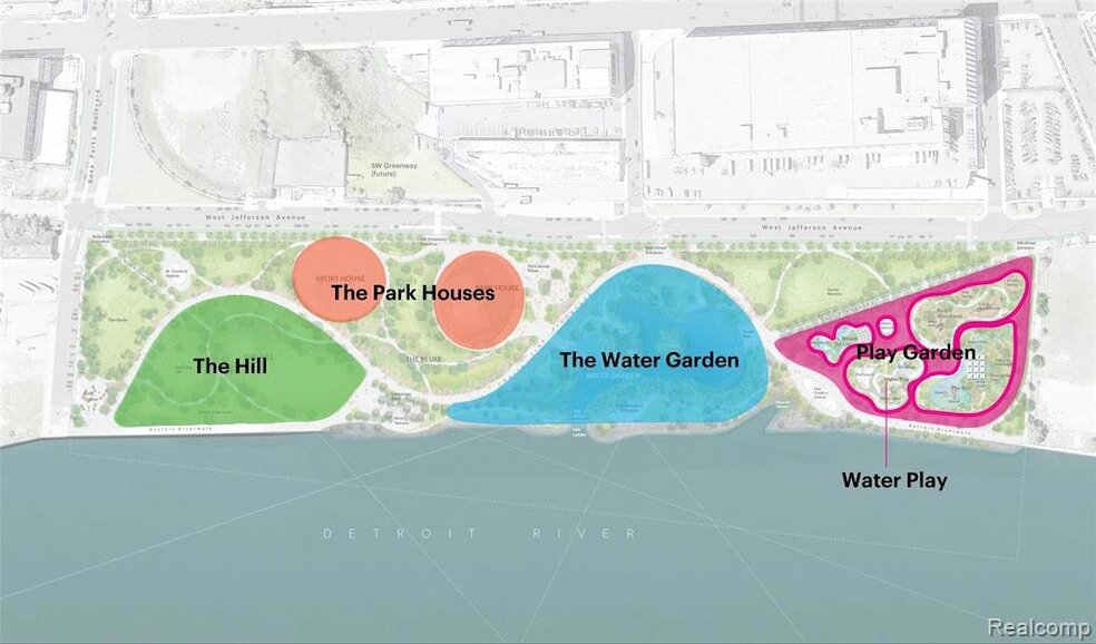 1001 W Jefferson Ave tiene 5 parques en un radio de 2.4 millas, incluyendo Belle Isle, Soaring Adventures, Detroit Riverfront, Chene Park, y Fort Wayne.