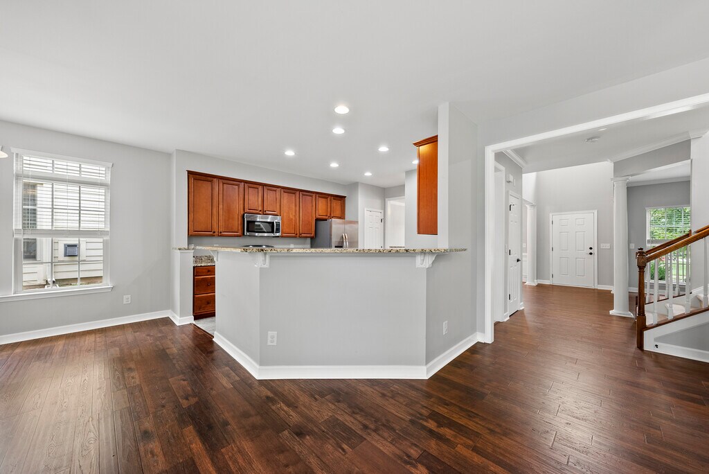 Welcome home to this charming Colonial with 4 Bedrooms in popular Kitts Creek in Wake County! This property boasts of an open floor plan, great for entertaining. Updated engineered hardwood in the main living areas, and is Move-In Ready! Formal Dining and Living Rooms complement the entrance hall, large Kitchen includes an island plus an Eat-in Kitchen, First Floor Laundry room with Sink, and a Flex Room with a mirror that could be well-suited to a fitness space. Enjoy the large Primary suite with 2 separate closets, a Huge Primary Bath with a separate tub and shower, plus a walk-in closet. Secondary bedrooms are generously sized with lots of storage for comfortable living. Home features a large, private patio with a 2-car rear-load oversized garage! Kitts Creek is a family-friendly neighborhood with an Active Social Event calendar that has amazing amenities that include a pool, clubhouse, fitness center, playground, parks and green space, tennis/pickleball courts, and dog parks. Conveniently located in the heart of the Research Triangle with easy access to I-540, I-40, RDU, and a variety of shops and restaurants. Submit your application today! The owner pays for the HOA fees, which cover common area facilities, including the Clubhouse, Pool, Gym/Fitness Area (with a yoga/dance studio), Community Garden, Tennis Courts, Gazebo, Green Open Space, Community Library, and Children's Playground. The renter pays for all utilities, landscaping, and consumables. 12-month lease. No pets. No smoking.