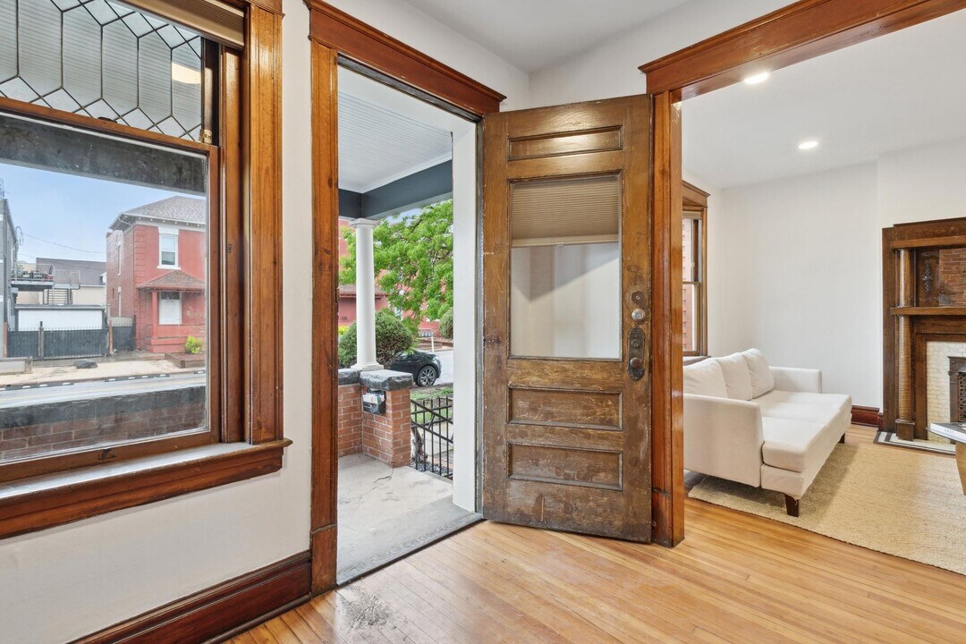 Rare Denver rental opportunity — historic charm meets fully modern renovation. This beautifully updated home features gleaming original hardwood floors, a classic wood fireplace mantel, and oversized bay windows that flood the space with natural light. The chef's kitchen has been completely transformed with a large quartz island, gas cooktop, double wall ovens, stainless steel side-by-side refrigerator, dishwasher, and custom white shaker cabinets with a wall-mounted range hood — everything a home cook could want. The fully renovated bathroom features a double quartz vanity with dual undermount sinks, brushed nickel fixtures, and a soaker tub with floor-to-ceiling marble-style tile. ? Original hardwood floors ? Chef's kitchen with gas cooktop & double wall ovens ? Quartz countertops throughout ? Renovated bathroom with double vanity ? Historic character in a prime Denver location