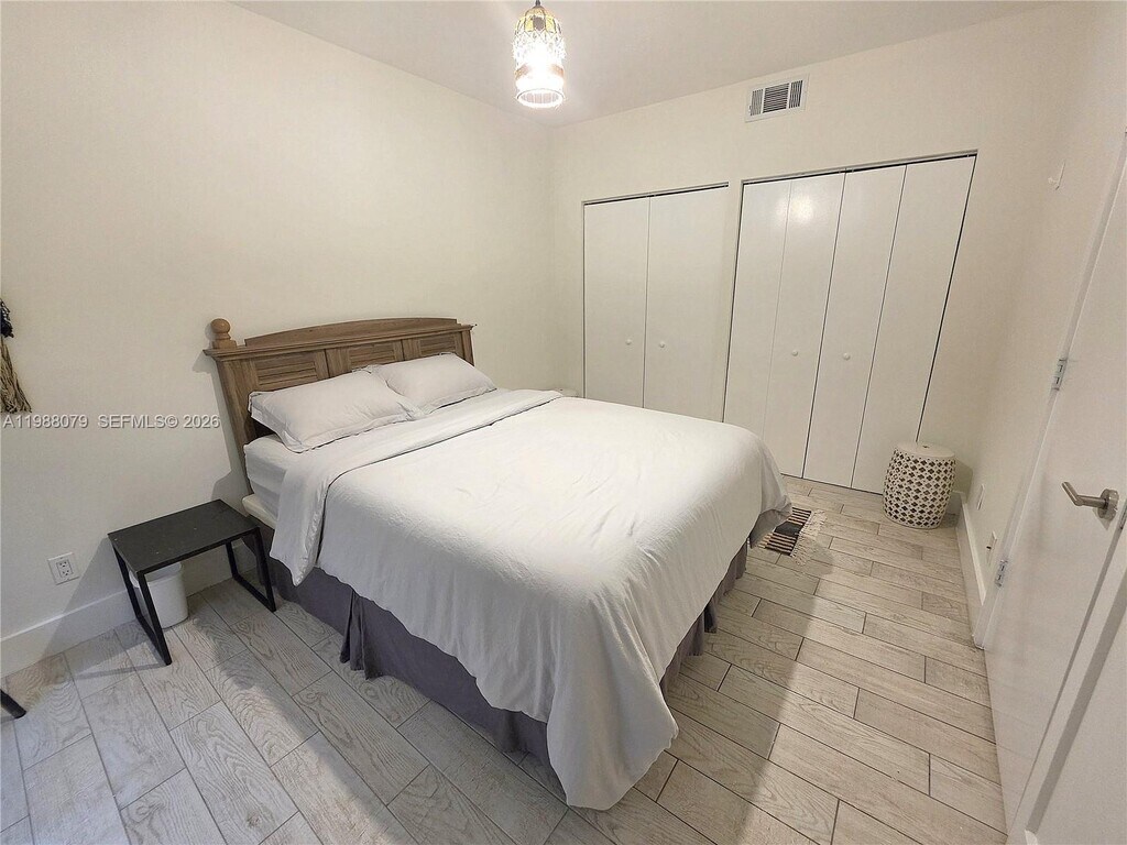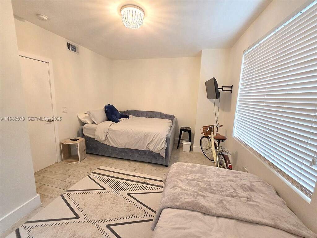 One of theNewly remodeled and fully furnished 2 bed / 1 bath condo unit just next to Flamingo Park (Park, Tennis and Public swimming Pool). White modern furniture, stainless steel appliances, closets, Washer Dryer in unit, tile floors, French doors, dining/living area, Flat screen TV. Open sky view through the windows, unit in last floor. Lots of light and no one living above. No elevator in building and unit is on the 3rd floor. MLS # A11848059