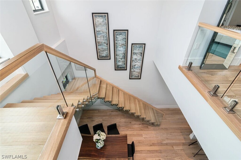 Unit 210 at SoCe Flats is a modern loft designed to impress! The 1-bedroom,2-bath duplex floor plan has ceiling to floor west facing windows spanning two levels and offers the largest under air square footage in the building. SoCe Flats is an exciting new condominium development in the most desirable neighborhood in Naples,the Paradise Coast's most coveted beach town. "SoCe",named for the ideal location South of Central Avenue in Olde Naples,offers the unique opportunity for a luxurious short-term vacation stay,walking distance to the beach and elegant 5th Ave S shopping and dining district. The building was designed by renowned local architect,MHK,and the interiors are decked out with finishes and furnishings selected by coastal contemporary design experts,Clive Daniel Home. The 2-level floor plan of unit 210 includes,on the entry floor,a fully equipped kitchen with quartz countertops and a breakfast bar open to the living room,which can be a sleeping space for up to 2 people on a sleeper sofa. A full bath on the main floor offers convenience for guests and reserves privacy for the master loft! Upstairs,the spacious master bedroom loft has a king size bed,sitting area and an en suite bathroom with double sink vanity and a large walk-in shower. Covered parking on the ground floor is included for 1 vehicle. Designed to offer urban sophistication and amenities within a quaint beach town setting,SoCe Flats is an ideal place to enjoy the increasingly cosmopolitan Naples lifestyle! Onsite,the 18-unit building has an open air amenity deck on the third floor which features an outdoor grilling area,lounge and dining seating with a TV. SoCe is located along the growing "8th Street Corridor" in Olde Naples just three short blocks from 5th Ave S and eight blocks from beach access at the end of charming 1st Ave S. Many other conveniences are within walking distance such as Wynn's gourmet market and CVS. As is common throughout Olde Naples,construction is ongoing nearby. There is a new building going up directly to the south,which impacts the views from the Amenity Deck but is not visible from inside the units. Noise is not of concern due to the building's solid concrete construction and impact grade windows.
