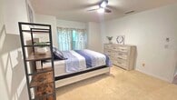 Spacious furnished master bedroom (NOT THE WHOLE APARMENT) with private bath and walk-in closet in a quiet, ground-floor condo. Shared access to kitchen, living room, in-unit laundry, and enclosed patio. One Embry-Riddle student currently in the unit quiet and respectful. Residents enjoy shared access to a well-maintained kitchen with modern appliances, a comfortable living room, in-unit laundry, and an enclosed patio perfect for relaxing. The condo is located on the ground floor of a quiet community and includes access to amenities such as a heated pool, fitness center, and clubhouse. Rent includes all utilities, Wi-Fi, and cable for added convenience. Available March 1st