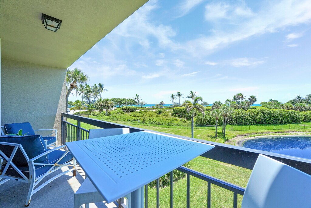 Ocean views in this 2 bedroom/2 bathroom, nicely furnished, seasonal rental condo. Community has beautiful pool and is conveniently located to Publix, restaurants, shops, beach, fishing, boating.4-month minimum seasonal rental $8,200/mo. (Dec 1 - Apr 30). 4-month minimum Off season rental $5,000/mo.