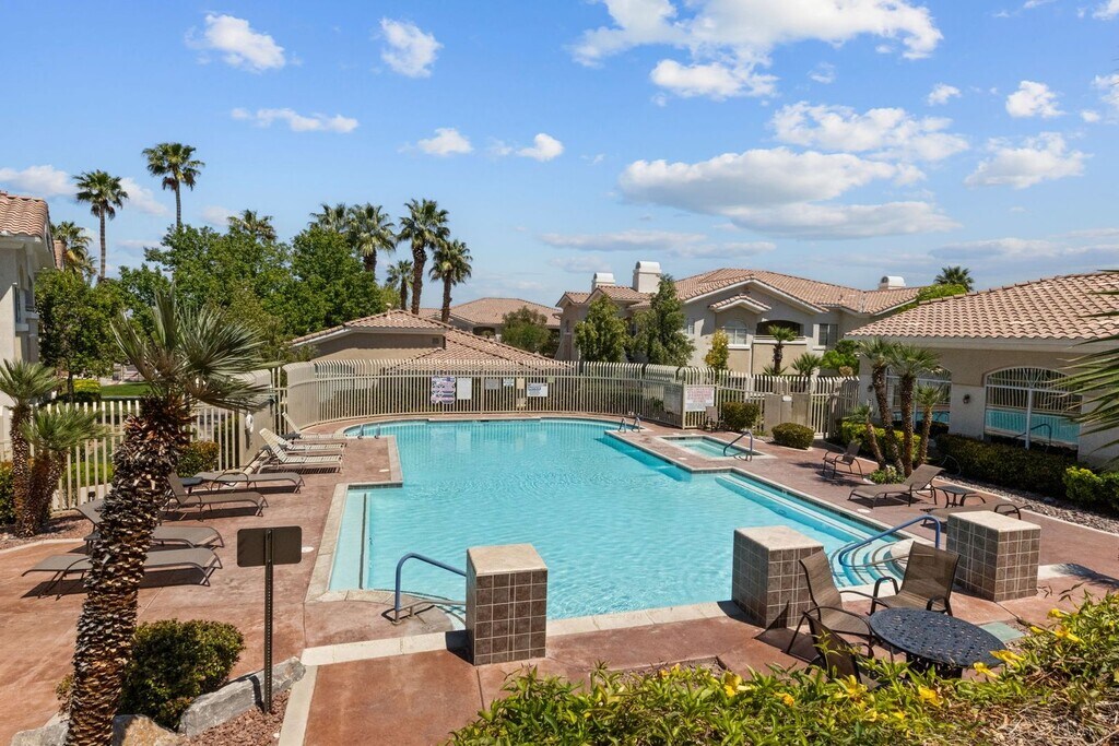 Discover comfort, convenience, and style in this beautifully maintained ground-floor condo located in the highly desirable, gated Red Bluffs community. Step inside to an inviting open layout featuring a bright and spacious living area, a convenient breakfast bar, and a private covered patio perfect for morning coffee or unwinding after a long day. The primary bedroom offers a generous walk-in closet and direct patio access, while the secondary bedroom sits near its own full bath—ideal for guests, roommates, or a dedicated home office. A detached 1-car garage adds secure parking and extra storage, and the home’s excellent location helps keep NV Energy and SW Gas bills lower than average. Enjoy resort-style amenities including a sparkling pool, relaxing spa, and fully equipped fitness center. With top-rated schools, shopping, dining, and easy freeway access just minutes away, this condo offers the best of modern living. Don’t miss your chance—schedule your tour today!