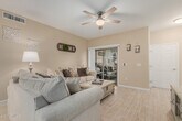 Welcome to our beautifully appointed 3-bedroom,2-bathroom condo at Coyote Landing in Mesa,AZ,perfect for your next desert getaway. Just steps from the pool,this spacious and thoughtfully designed retreat offers a blend of comfort,style,and convenience. Sleeping Arrangements The primary bedroom features a plush king-sized bed,an en-suite bathroom,and plenty of closet space,providing a relaxing private space for rest. The second and third bedrooms each include comfortable queen-sized beds,perfect for family members or friends. Living Space The condo's open-concept layout connects the kitchen,dining,and living areas,creating a seamless flow that's perfect for both relaxation and socializing. The living room features comfortable reclining sofas