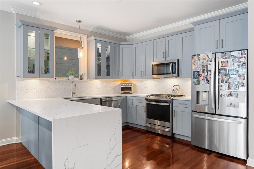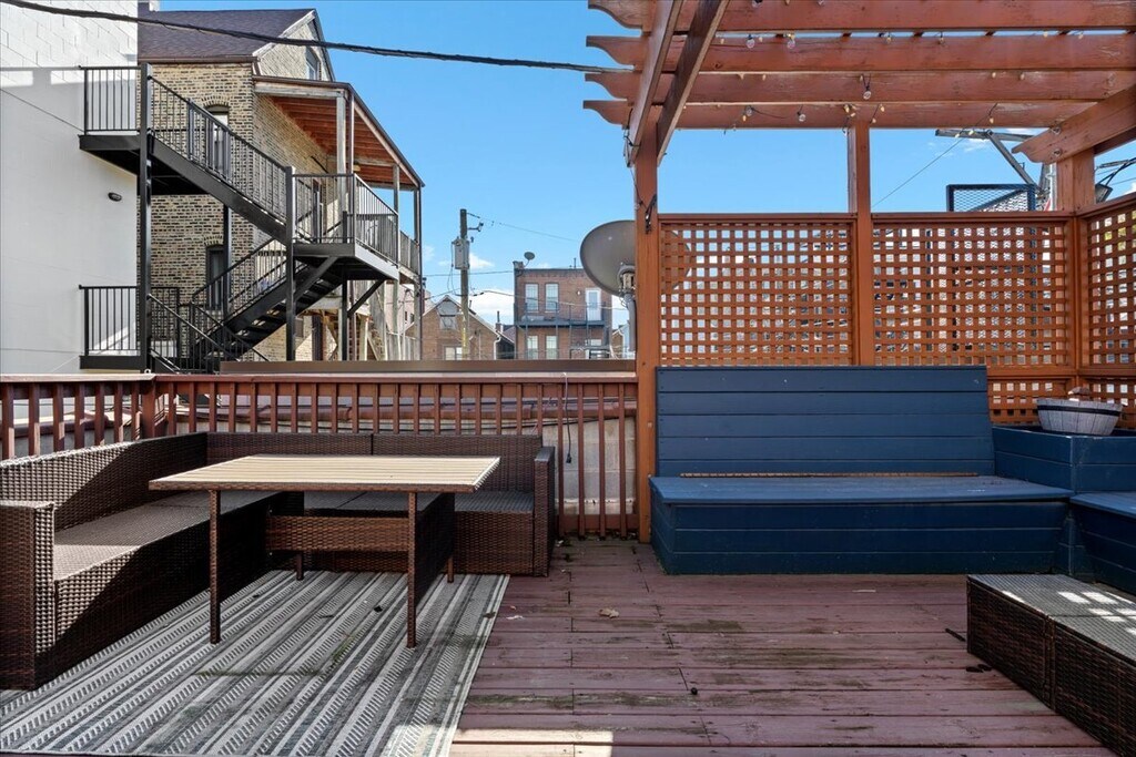 Beautiful 3-bedroom,2.1-bath duplex-down situated on a quiet,tree-lined street in the middle of West Town/Wicker Park neighborhoods. Expansive front-facing windows deliver strong natural light across both levels. The main floor offers an open-concept living and dining area,anchored by an updated fireplace surround with custom built-ins. The chef's kitchen features quartz countertops with waterfall edge,updated sink and fixtures,modern backsplash,newer appliances,and a peninsula designed for seating and functionality. The primary suite includes a professionally organized walk-in closet,direct access to a private deck,and a spacious en-suite bath with double vanity,separate shower with body sprays,and a six-foot soaking tub. A powder room and custom entry storage with bench and coat rack complete the main level. The lower level provides a large family room that opens to a private patio,creating a secondary living space ideal for entertaining or relaxation. One bedroom,currently configured with French doors and custom built-ins,functions well as an office or guest room,alongside an additional full bedroom,full bath,and a dedicated laundry room with side-by-side washer/dryer,counter space,and storage. Additional highlights include hardwood flooring throughout,substantial storage,and three private outdoor areas,including a sizable garage deck. Strategically located with immediate access to Wicker Park dining,retail,nightlife,and public transportation. MLS# MRD12595945 Based on information submitted to the MLS GRID as of [see last changed date above]. All data is obtained from various sources and may not have been verified by broker or MLS GRID. Supplied Open House Information is subject to change without notice. All information should be independently reviewed and verified for accuracy. Properties may or may not be listed by the office/agent presenting the information. Some IDX listings have been excluded from this website. Prices displayed on all Sold listings are the Last Known Listing Price and may not be the actual selling price.
