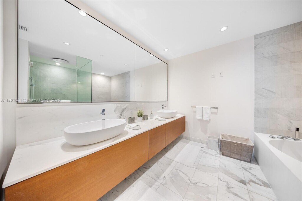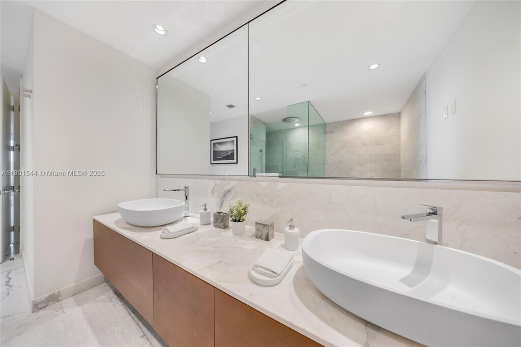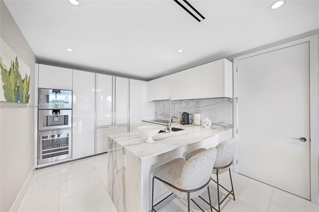 This beautifully furnished residence at Oceana Bal Harbour offers a sophisticated waterfront lifestyle with serene bay views. The one-bedroom, one-and-a-half-bath layout is filled with natural light and designed for both comfort and elegance. The kitchen and primary bathroom are finished in luxurious Calacatta Gold marble, paired with top-of-the-line Gaggenau appliances and sleek, modern cabinetry. The residence has been recently updated with new, carefully selected furniture; however, the current photos do not reflect these upgrades, as most of the furnishings shown have since been replaced with new pieces. Available April 27, 2026, this turnkey home presents a rare opportunity to enjoy refined finishes, updated interiors, and the exceptional amenities and lifestyle of Oceana Bal Harbour. MLS # A11940531