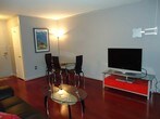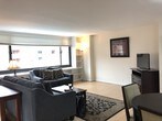Fantastic Junior 1 bedroom/1 bath furnished and fully updated with luxury maintenance-free flooring, new bathroom fixtures and tiles, modern soft close kitchen cabinets, stainless steel appliances, quartz countertop, and backsplash, recessed lights, chandeliers, sliding glass doors, and designer touches throughout. Furnished in style with sofa, rug, dining set, desk, queen bed and frame, built-ins, and Smart TV. Amenities include gym, pool, sauna, concierge, security. Walk to Rosslyn Metro and Georgetown. Leases shorter than 1 year are allowed at a higher rent.