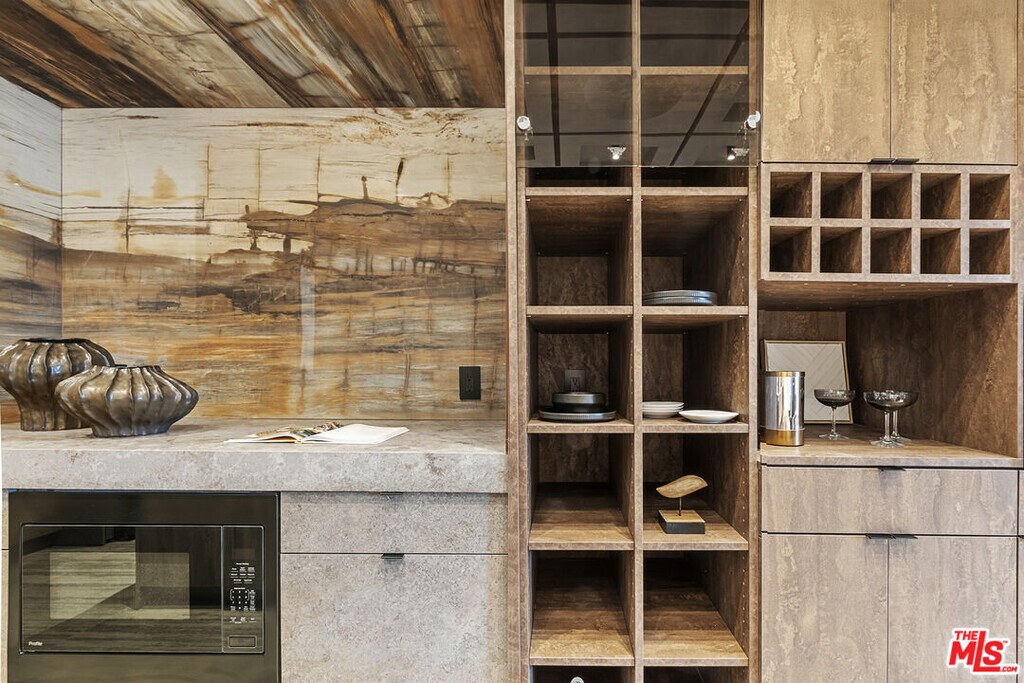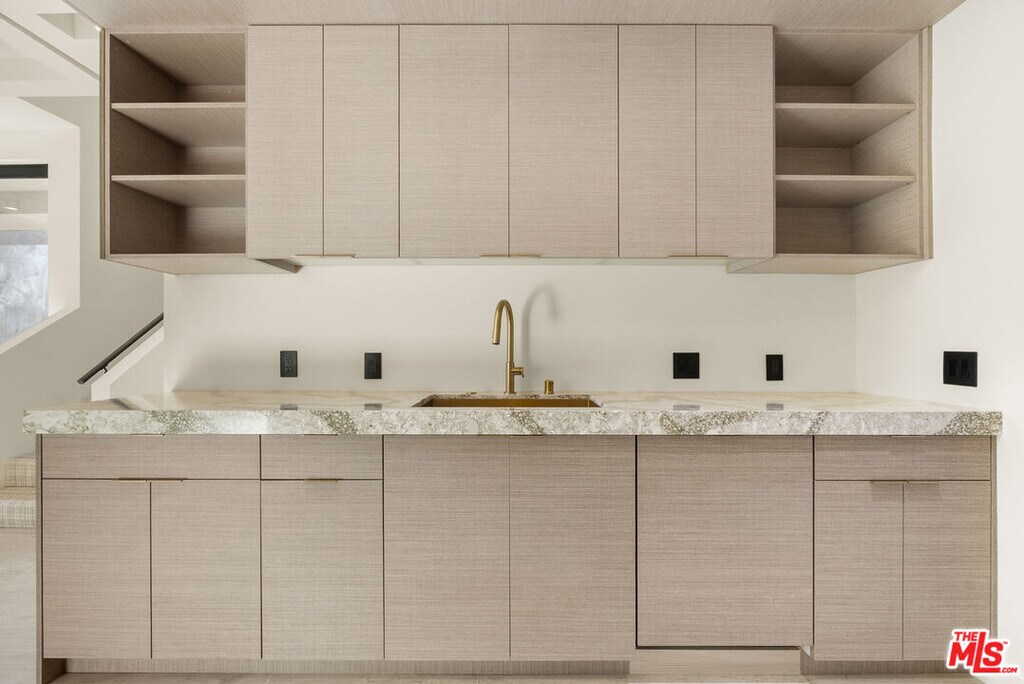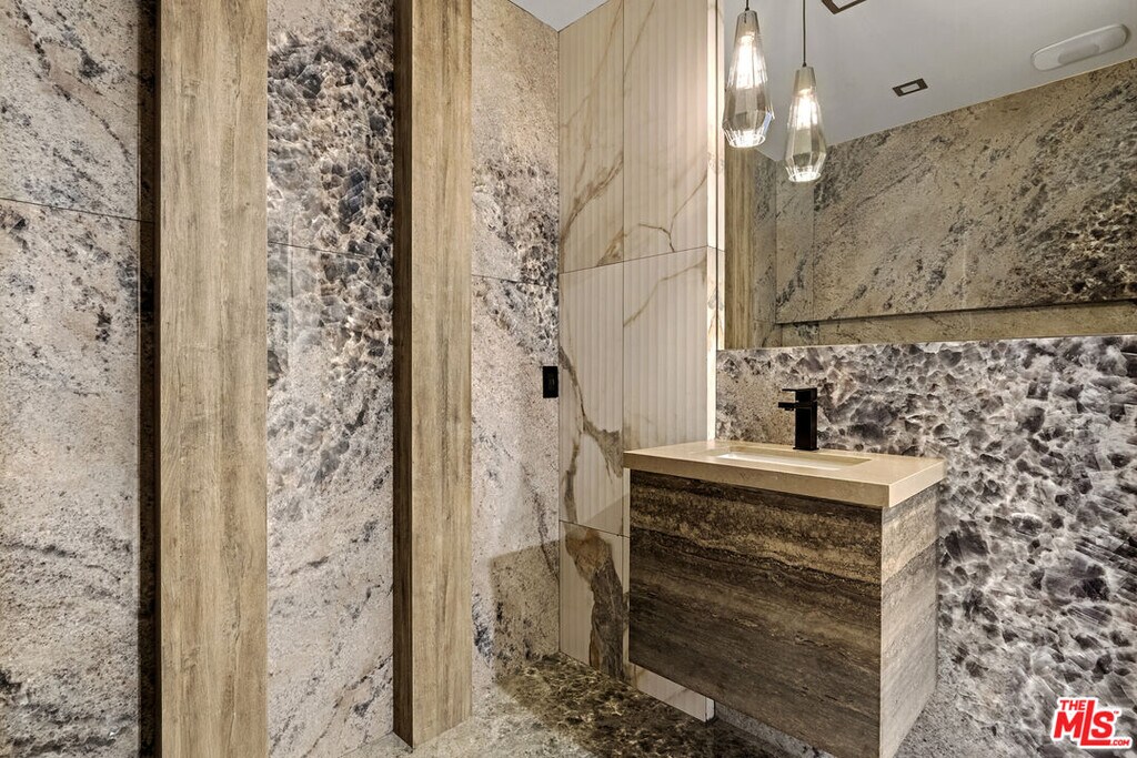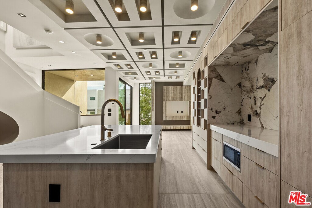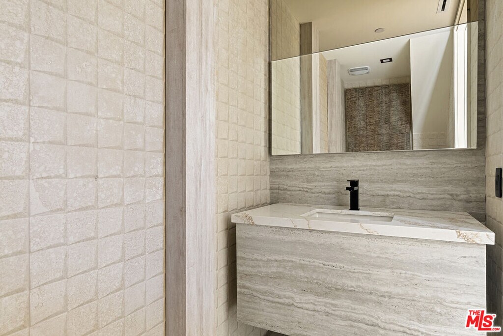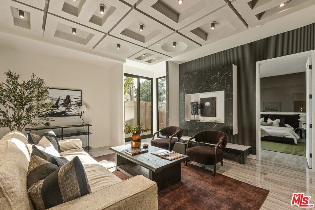 Welcome to The Corten Atelier, a one-of-one architectural residence. A never before lived in two bedroom, 2.5 bath penthouse home within the newly completed Limited Edition building, defined by a serene European stone palette, sculptural architectural detailing, and integrated modern functionality rarely found in lease offerings. The dramatic living space is anchored by a custom coffered ceiling grid with integrated bronze lighting and a waterfall quartz kitchen island wrapped in bespoke cabinetry imported from Italy and Spain. A sculptural interior staircase ascends to the private upper level where both bedrooms are positioned, establishing a rare two-level penthouse layout. Walls are finished in ceramic and floors in porcelain, with the majority of tile selections sourced from premier manufacturers in Italy, Spain, and the United Kingdom. The primary suite continues the architectural narrative with sculpted wall detailing, custom upholstered forms, and direct terrace access. The spa bath is finished in layered oxidized-tone European tile with striated textural relief and floating vanity, a boutique-hotel composition rarely seen in new lease construction. Secondary bedrooms maintain the same curated material palette and detailing. Expansive sliding glass doors extend the residence to a 127 sqft private terrace, while residents also enjoy access to a landscaped rooftop retreat featuring sculptural desert plantings including golden barrel cactus, San Pedro cactus, aloe varieties, and flowering planters, an elevated communal lounge framed by sky and city views. Delivered brand new, The Corten Atelier represents a level of architectural leasing product not previously introduced to this West Hollywood pocket. A collectible residence within the Limited Edition development defined by bespoke design, European materials, and sculptural living. MLS# 26657857