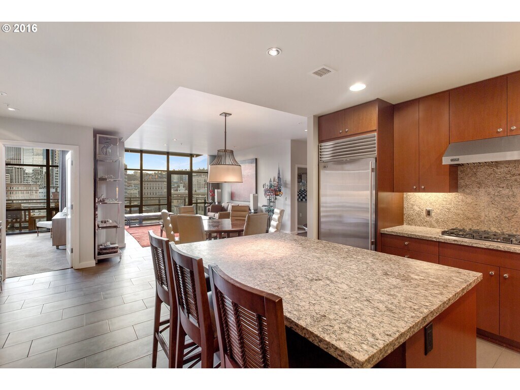 Come see for yourself why the Henry Condos are a cut above the rest! This spacious and light-filled southwest corner 2 Bed/2 Bath unit was totally remodeled in 2021. This custom-designed condo has high ceilings, a well-designed open floor plan, upscale finishes, custom cook's Kitchen and gorgeous views. Located in PRIME Pearl Location, across from Powell's Books, Whole Foods and other shopping and dining/breweries. Features Include: • 2 Bedrooms • 2 Full Bathrooms • 1.656 ft • Formal Entry Hall • Tiled floors with carpeted Bedrooms • Spacious Living & Dining areas with wall of floor-to-ceiling windows overlooking The Pearl city skyline. • Gorgeous open Kitchen with island, eating bar, slab granite counters and backsplashes, and hi-end stainless appliances with 6-burner gas range and large wet-bar. • Primary Suite features a wall of glass windows with door to the balcony, walk-thru Dressing Area with built-in custom closet organizers, and lux spa Bathroom with floating dual-sink vanity and fabulous glass-enclosed shower with custom tilework. • Nice 2nd Bedroom and Full Bath with tiled shower • Large Den/Office nook with wall of custom built-in cabinetry and shelves • In-unit stacked Washer/Dryer • Large Storage Room off Kitchen with built-in shelving • Large Balcony to enjoy the beautiful views with access from both the Living Room and Primary Bedroom • 2 Tandem Parking spaces in the parking garage • Beautiful, welcoming lobby with concierge • Concierge services, gas, water/sewer, garbage & gas included. • Nestled in a prime central location, this residence is just steps away from the Living Room Movie Theater, iconic Powells bookstore, Whole Foods, Shake Shack, The Ritz, and a plethora of dining and shopping options. • Walk Score of 100!!! • Don’t miss your chance – this is as good as it gets! -- Renter's Insurance Required -- * Tenant to pay $900 move-in fee to HOA (includes move-in, pre-paid move-out and orientation) ** No smoking building & no pets permitted *** Note: This unit is not ADA compliant *** Per City of Portland/Multnomah County laws, we cannot accept applications for this property until 11:30am on Thursday, April 23rd. Any application submitted before that day and time will be considered received at 7:30pm on Thursday, April 23rd as an 8 hour penalty