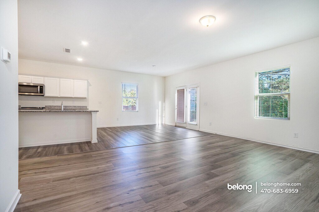 A graceful blend of modern design and tranquil surroundings, this 4-bedroom, 2.5-bath home in Loganville pairs everyday comfort with quiet sophistication. You’ll feel the openness right away in the bright living area, where wide plank floors extend toward French doors that frame views of the lake beyond. It’s a natural spot for unwinding, entertaining, or simply watching the light shift across the water. The kitchen sits at the heart of the home, appointed with sleek cabinetry, stainless steel appliances, and a generous island that invites casual meals or conversation while cooking. A pantry keeps everything organized, and the dining space nearby feels intimate yet connected. Your spacious main suite offers a calm retreat with a huge walk-in closet and an ensuite bath designed for both practicality and peace. Three additional bedrooms share a well-planned second bath, while a half bath for guests adds convenience. You’ll also love the game area and private office, which provide flexibility for work and leisure. Sliding doors open to a patio overlooking the lake and a grassy yard perfect for outdoor gatherings. One pet is welcome to join your life here, and the 2-car garage provides secure parking and extra storage. Just minutes away are local favorites like Vines Botanical Gardens, Loganville Town Centre, and easy grocery stops at Kroger and ALDI. *Our homes come as-is with all essentials in working order. Want upgrades? Request it through the Belong app, and our trusted pros will take care of the rest!