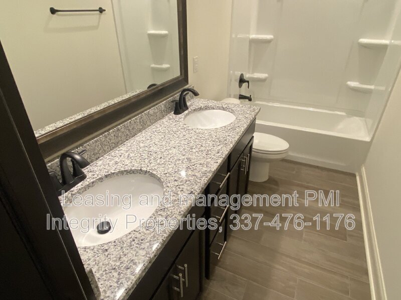 FOR RENT: NEW Construction in the Gabriel's Place Community built by DSLD Homes! 4 bedrooms & 2.5 bathrooms. This home includes upgraded stainless appliances with a gas range, wood plank tile flooring & more. Special features: granite counters, kitchen island, framed bathroom mirrors, walk-in closet, garden tub & separate shower in master, smart connect Wi-Fi thermostat, covered patio, fully sodded yard with seasonal landscaping package, gas tankless water heater, post-tension slab & the list goes on! Appliances to include washer and dryer, refrigerator, dishwasher, stove/ oven. Fence will be added to the house in the upcoming days. This is close to the Youngsville Sports Complex, shopping and more. Application is $49 Per person. Apply at www.pmi- Utilities are: Slemco, Center Point Energy (GAS), City of Youngsville for water and sewer. TV, Internet and phone is AT&T. Tenant responsible for utilities, yard maintenance and pest control.
