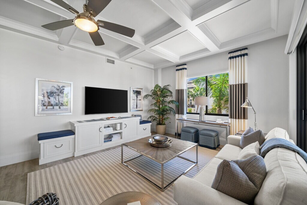 CANCELLATION! OPEN FOR 2026 Season! This beautifully furnished,previous " MODEL" offers 3 bedrooms/Den/3 baths condominium,has exquisite detail and designer furnishings,right in the heart of Olde Naples. This 2,500 sq. ft. property,has a great room,gourmet kitchen,with beautiful cabinetry,granite counters/bar,and stainless appliances,large wrap around lanai,within a luxury building with private,secure ground level parking. Walk to all the great amenities of the historic district,with fabulous restaurants,shows,boating,and beach. The unit has a King Bed in the Master Suite,quality décor and linens,spacious closets,private bath with a walk-in shower,and separate tub. The two guest suites have Queen size beds,quality linens,spacious closets,and both have their own bath. The Den is outfitted with a comfortable couch with a sleeper bed,and TV.. This property's location within the building affords easy access to the community club room,with seating,TV,kitchen,baths,and billiards,as well as the exercise facility. Just a quick walk out to the pool/spa area,which offers plenty of seating areas,chaises,and an outdoor BBQ area. See photos to appreciate.