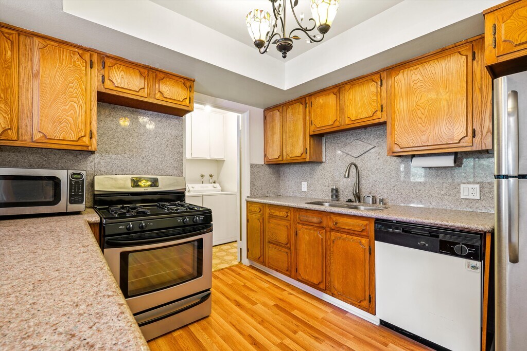 This remodeled, one bedroom, top floor condo features over 1050 SF and is conveniently located just blocks to Poinsettia Recreation Center, Plummer Park, Formosa Park, Trader Joe's, Whole Foods, Breakfast by Salt’s Cure, Harlowe, Las Perlas, Bar Lubitsch, the Target shopping center at Santa Monica and La Brea, and endless boutique shopping on Melrose! We guarantee you won’t find another condo like this for rent! After entering this secure building, taking the elevator to the top floor and walking to the very end of the hallway, you will enter this corner unit through a set of double doors. Fresh bright paint contrasted against dark wood floors with large open rooms and an extra wide hallway all lend to the sleek modern esthetic. To the left as you enter you will find a spacious laundry room with full sized in-unit washer & dryer and storage cabinetry above. Also off the hallway you have access to a half bathroom and linen closet before reaching the pocket door into the kitchen. Gray quartz countertops are paired with an open shelf and upper and lower soft close cabinetry. Stainless steel appliances include refrigerator, gas stove, built-in microwave, dishwasher and wine fridge! With a pass through over the counter to the spacious living room, additional storage cabinetry can be found on the opposite facing of the cabinetry and maximizes the space beautifully. Oversized windows and a sliding glass door to your private balcony bring in an abundance of natural light. Fit for a king, and then some, the bedroom features a sizable wardrobe closet, sliding glass door to balcony and ensuite bathroom with dual sinks and deep luxurious soaking bathtub with a glass enclosure. When I say deep I mean DEEP - get your step stool because this tub is unreal! Condo living is distinctly different from apartment living and it can be felt from the moment you walk into this home. Surely this one won’t last long so contact us today for a tour! Minimum One Year Lease. Owner pays for water, sewer and trash! Tenant pays remaining utilities including electric, gas, cable, internet and rental insurance. Cats and small dogs will be considered with an additional deposit, $300/cat and $500/dog. Central Heat & Air Conditioning. One assigned parking space in the gated garage included.. Video Tour: No risk to apply. $40 application fee for credit report will not be due until your application and supporting documents are reviewed by the owner and it is confirmed that you meet the basic requirement of income equal to or more than 3x the rent, and solid credit above 650. To apply: