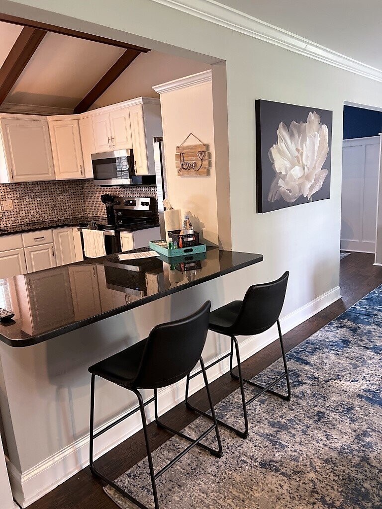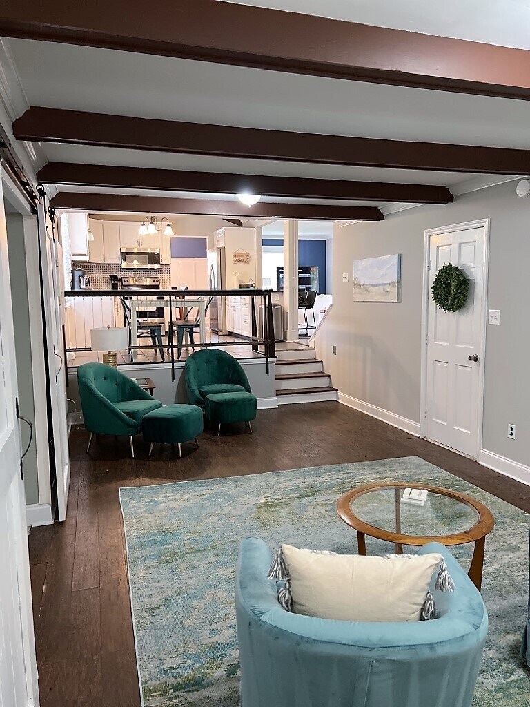 This inviting 4-bedroom split-level home is located in the established neighborhood of Ashley Forest and zoned for the highly sought-after Dorchester District Two schools. With its classic front porch, perfect for rocking chairs and winding down in the evenings, you'll feel at home before you even step inside. Inside, you're welcomed by warm hardwood floors, smooth ceilings, and a layout that offers both comfort and versatility. The formal living room offers a cozy retreat for reading or conversation, while the expansive family room is ideal for movie nights or entertaining guests. The eat-in kitchen blends character and functionality with beamed ceilings, ample cabinet and counter space, a tile backsplash, and stainless steel appliances. Upstairs, the spacious primary suite features a walk-in closet, private en-suite bath with walk-in shower, and its own balcony, perfect for sipping your morning coffee in peace. The secondary bedrooms are generously sized and offer flexibility for family, guests, or a home office. Step outside to a fully fenced backyard ready for cookouts, playtime, or relaxing weekends. Located just minutes from shopping, dining, parks, and charming downtown Summerville, this home blends convenience, space, and value.