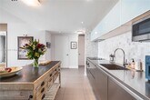 Fully renovated 2-bedroom, 2-bath high-floor, southwest-facing loft-style unit, ready for immediate move-in. This tastefully designed condo features white marble flooring throughout, high-end fixtures, and a kitchen island with a dining area, marble countertops, and premium appliances. The primary bedroom was relocated to optimize space, creating a spacious living/dining area and a den/TV room (second bedroom) with direct terrace access for added privacy and convenience. The unit includes a built-out bar/pantry with a wine beverage fridge, ample custom closets, and a full-size washer/dryer. Recent upgrades include a new AC and water heater. Comes with two valet parking spaces and a storage locker. Steps from Museum Park and Miami World Center, with easy access to public transportation and I-95.