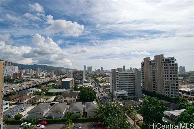 Rarely available high-rise condo centrally located in Honolulu with convenient access to H-1, Waikiki, and Downtown. Enjoy total privacy from this desirable end unit separated from neighbors by the elevator lobby. Spectacular city & partial ocean views from living room and bedrooms. Tile floors throughout with utility lanai. One assigned, covered parking stall and in-unit washer & dryer. Rent includes hot water, trash, water, and sewer. Tenant is responsible for electric and expanded cable/internet.