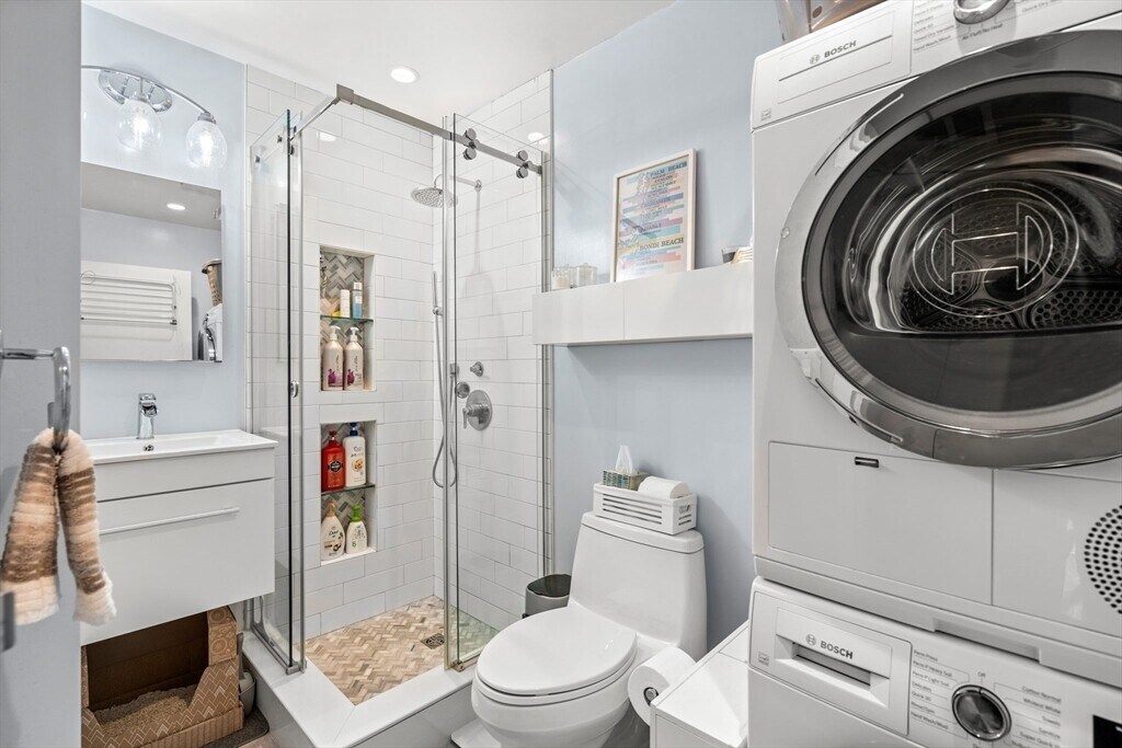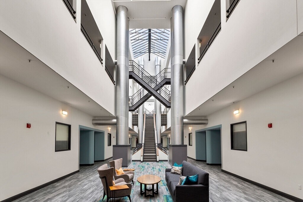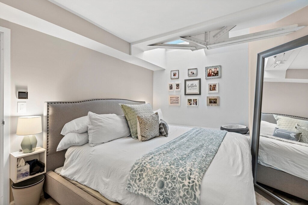 Located in the historic Basilica building,this well designed,bright & airy 2 bedroom,2 bathroom top floor duplex comes with its own deeded and heated GARAGE parking! Enjoy over 1000 square feet of open living space highlighted by a wall of windows. A center staircase separates the stainless eat-in kitchen from the living room and gleaming hardwood floors accentuate the abundance of natural light. Upstairs,the primary bedroom includes an en suite bath,custom California closet and skylight. The 2nd bedroom has a large walk-in closet & guest bath. Many original accents are highlighted to create a truly unique space with an ideal floor plan. Additional features include electric blinds and IN UNIT laundry. Live on the ocean's edge in the Charlestown Navy Yard with transportation via the water taxi and partners shuttle. All while being moments from highways and public transportation and amongst some of Boston's best restaurants and waterfront walking paths. MLS# 73456715