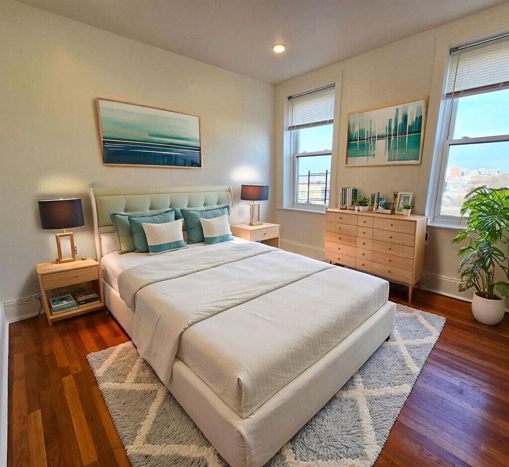 Welcome home to this fully renovated 2 bdrm apartment in the heart of Journal Square! This 5th story is a great place to call home. Upon entry, you are greeted by a nice sized living room, a gorgeous kitchen with new stainless steel appliances, quartz countertops, and beautiful dark wood cabinets to match. There's also 2 nice sized bedrooms, and a brand new bathroom as well. The unit is well lit during the day and has great city vistas all throughout. The building also has a laundry room for added convenience. The apt is ideally located near all shops, restaurants, schools, and just a few blocks from the Path Station. This is the place you've been looking for, call for a private tour today!