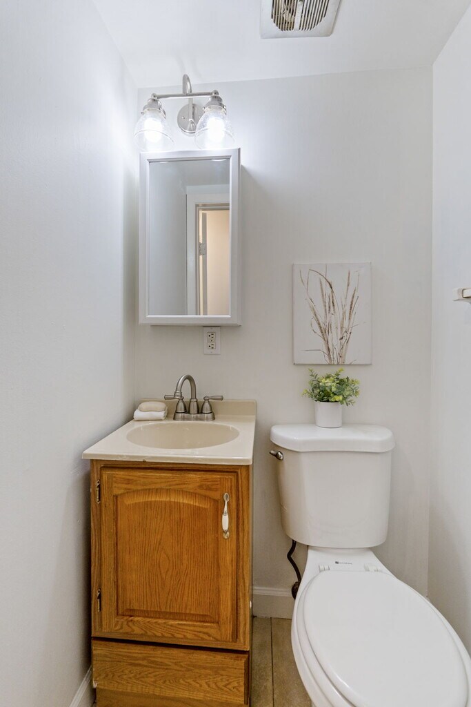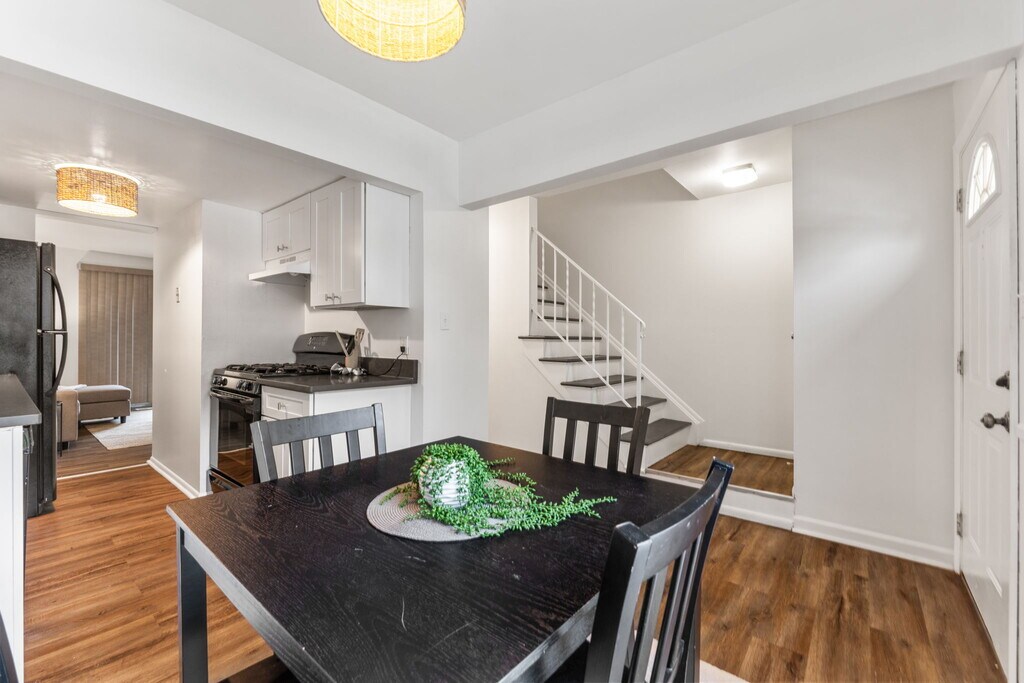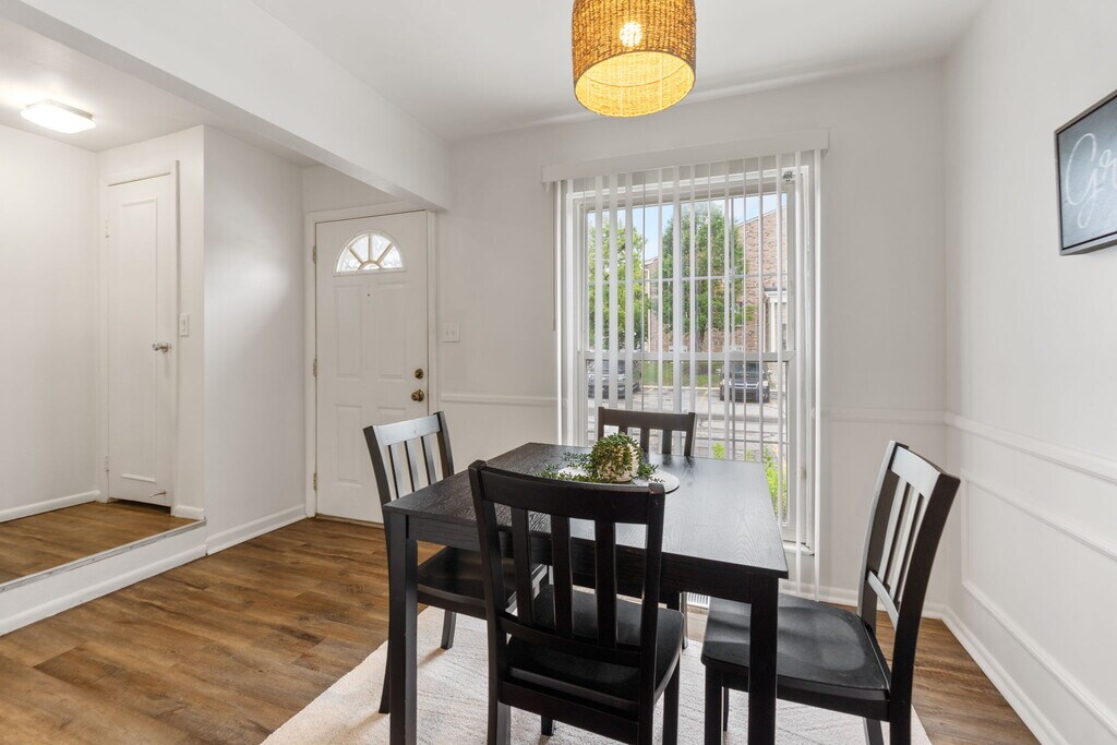 Wow! This charming condo is move-in ready and full of thoughtful updates. Step inside to find brand-new kitchen cabinets, fresh interior paint, LVP flooring, stylish new updated light fixtures that brighten every room. The spacious layout offers comfortable living. First floor offers a large living room, kitchen, dining room & half bath. Two generous sized bedrooms and hall bath are upstairs. Enjoy your morning coffee or unwind after a long day in the adorable enclosed patio perfect for relaxing or entertaining. Basement with laundry hook up and storage. Assigned parking spot. Community pool. Agent owned. No evictions allowed. No pets over 20 lbs.