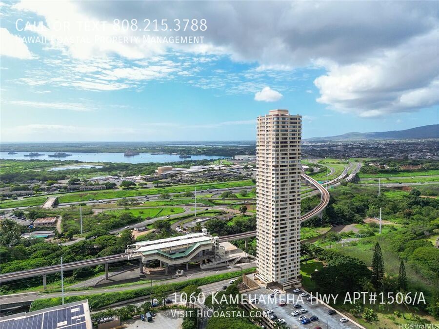 Newly remodeled, fully furnished and stocked corporate rental—just bring your toothbrush. Breathtaking mountain and Pearl Harbor views through expansive living room and bedroom windows. In-unit laundry, covered parking, pool, jacuzzi, and secured building. Steps from SkyLine Rail with island-wide transit access. Walking distance to Sam's Club, Walmart, and popular dining. Apply today at Cable Electricity Gas Internet Pool Service Refuse Water Yard Service